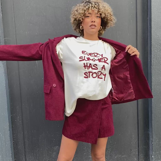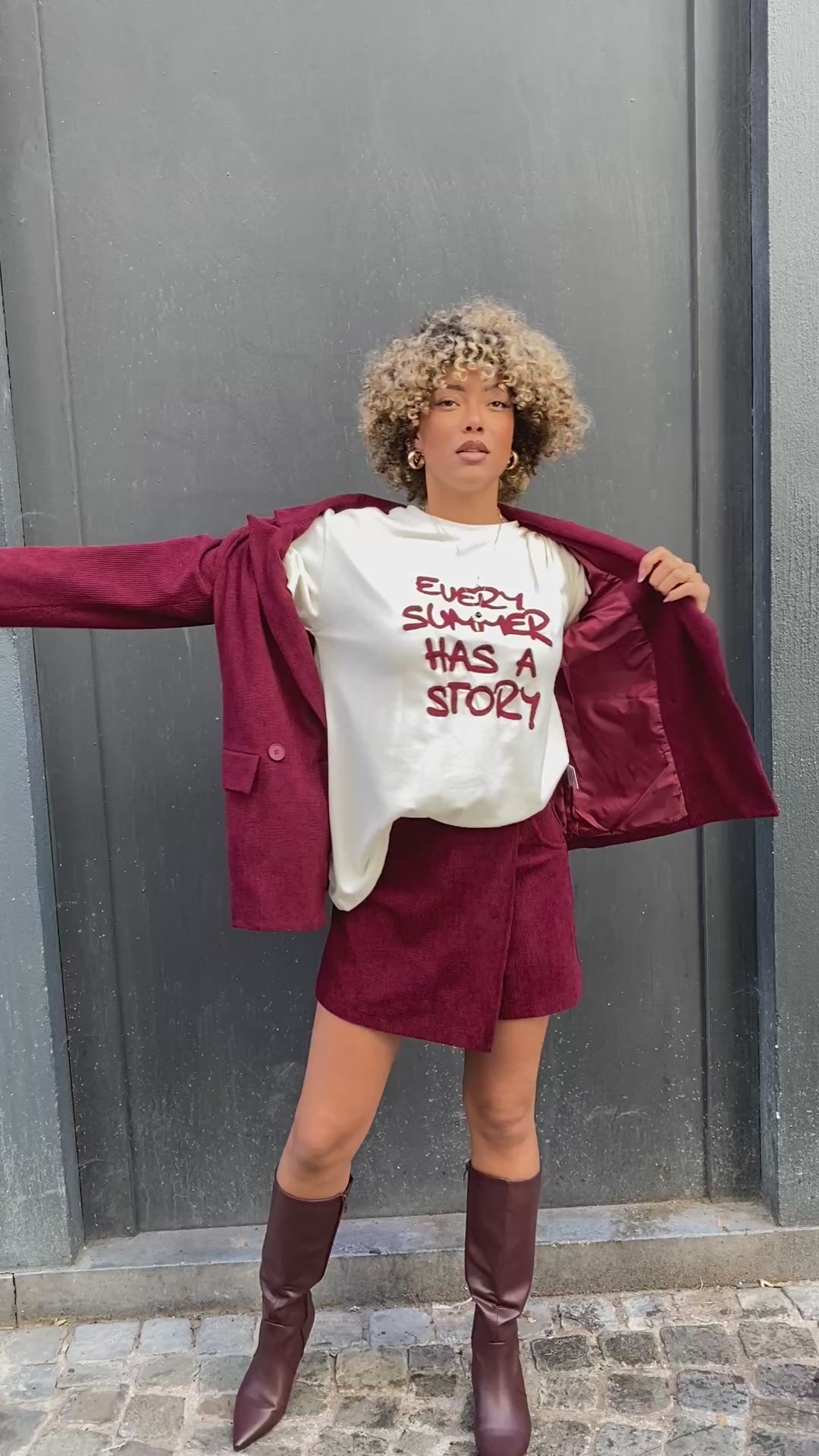 Blazer en velours fines cotes avec deux poches, elle est doublée, Belle qualité, coupe droite classique, un peu large Fermeture croisée avec double bouton