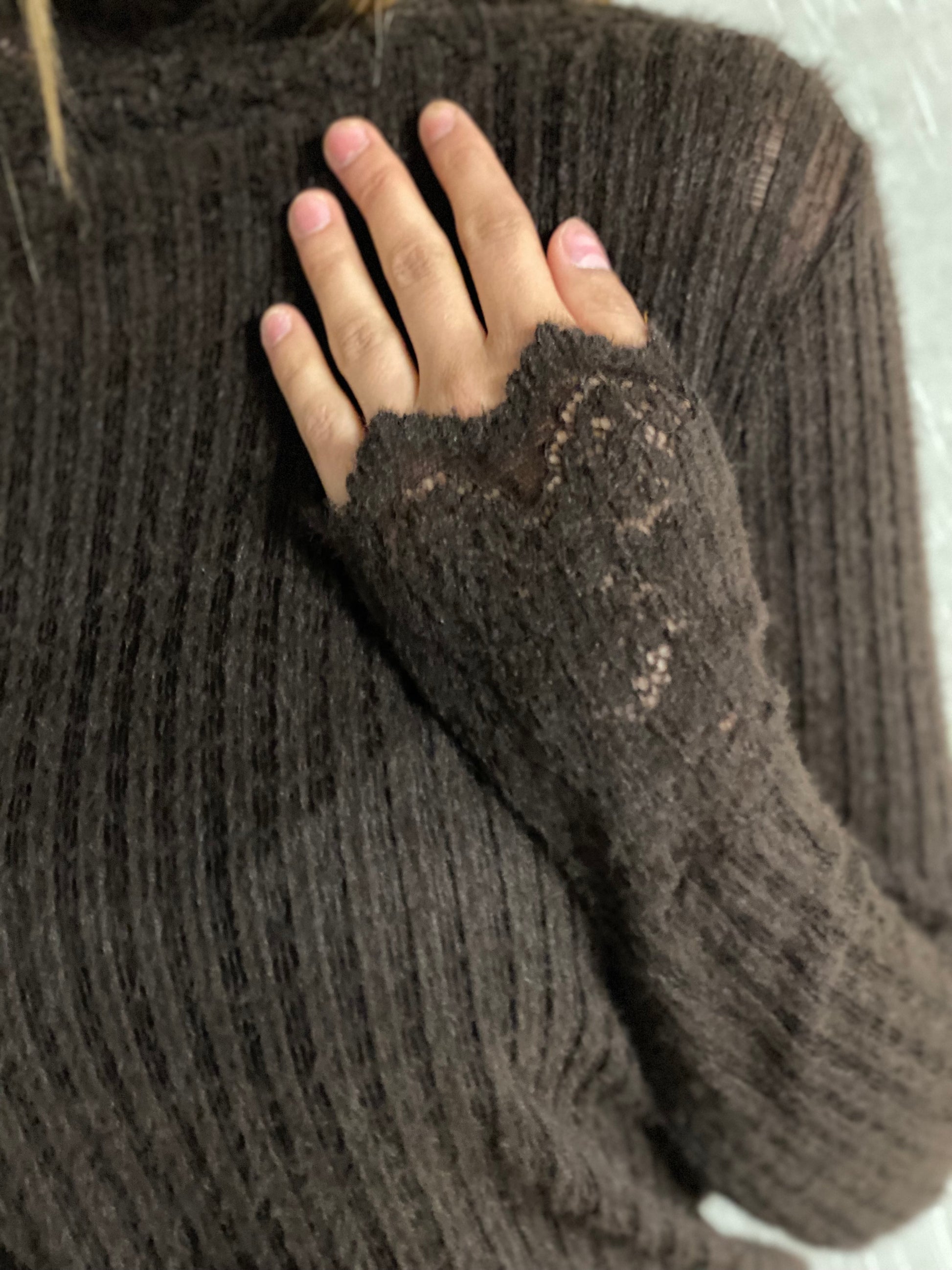 Avec le col montant en dentelle et de la dentelle au niveau des points