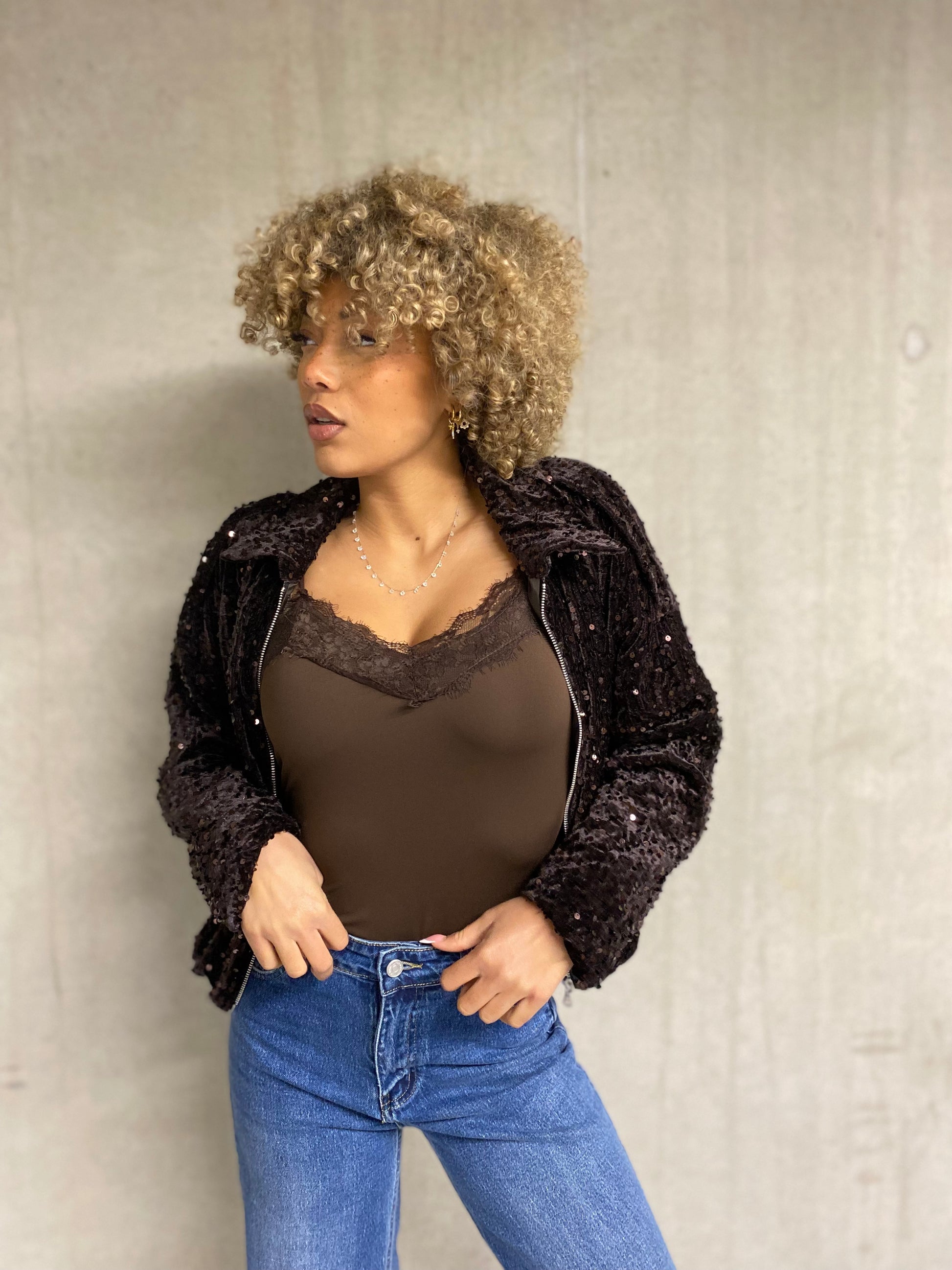 body en matière Lycra, fine bride Ajustableavec le bord en dentelle, au niveau de la poitrine s'attache avec des Agrafes