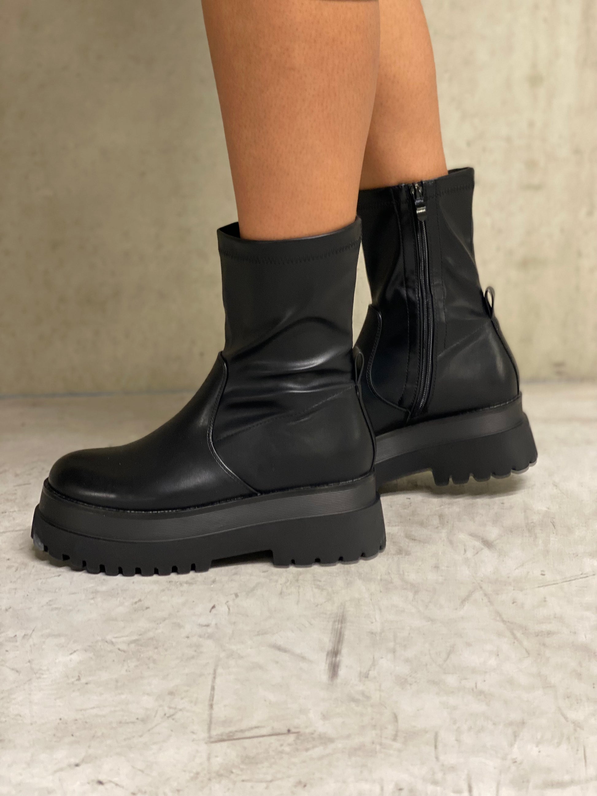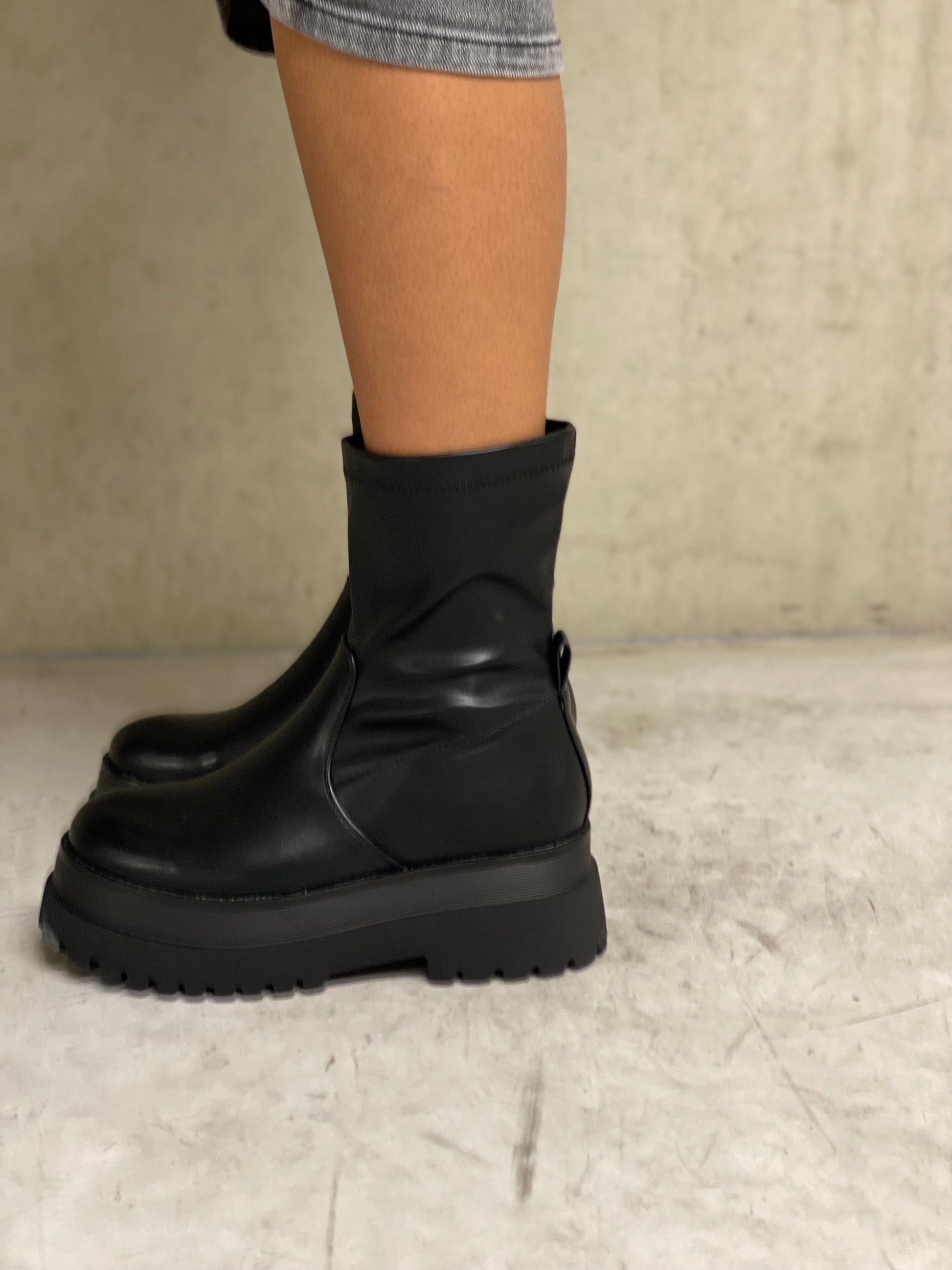 Petites bottines, matière élastique, avec une tirette sur le côté et une grande plate-forme