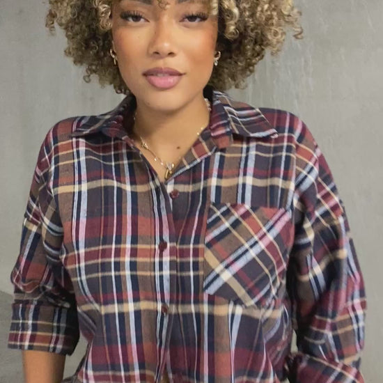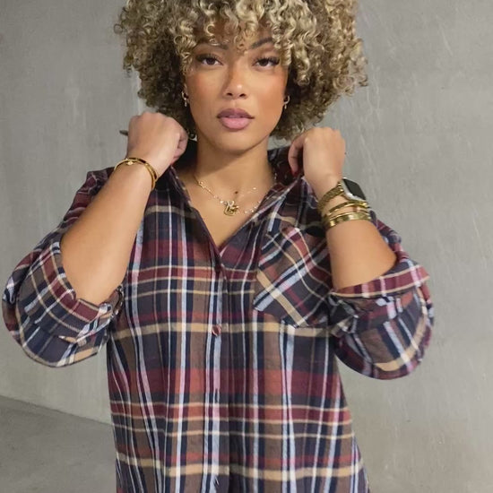 Chemise en coton bien épaisse chaude avec des carreaux style écossé une poche sur l'avant bétonné. La coupe est un peu droite assez large très confortable.
