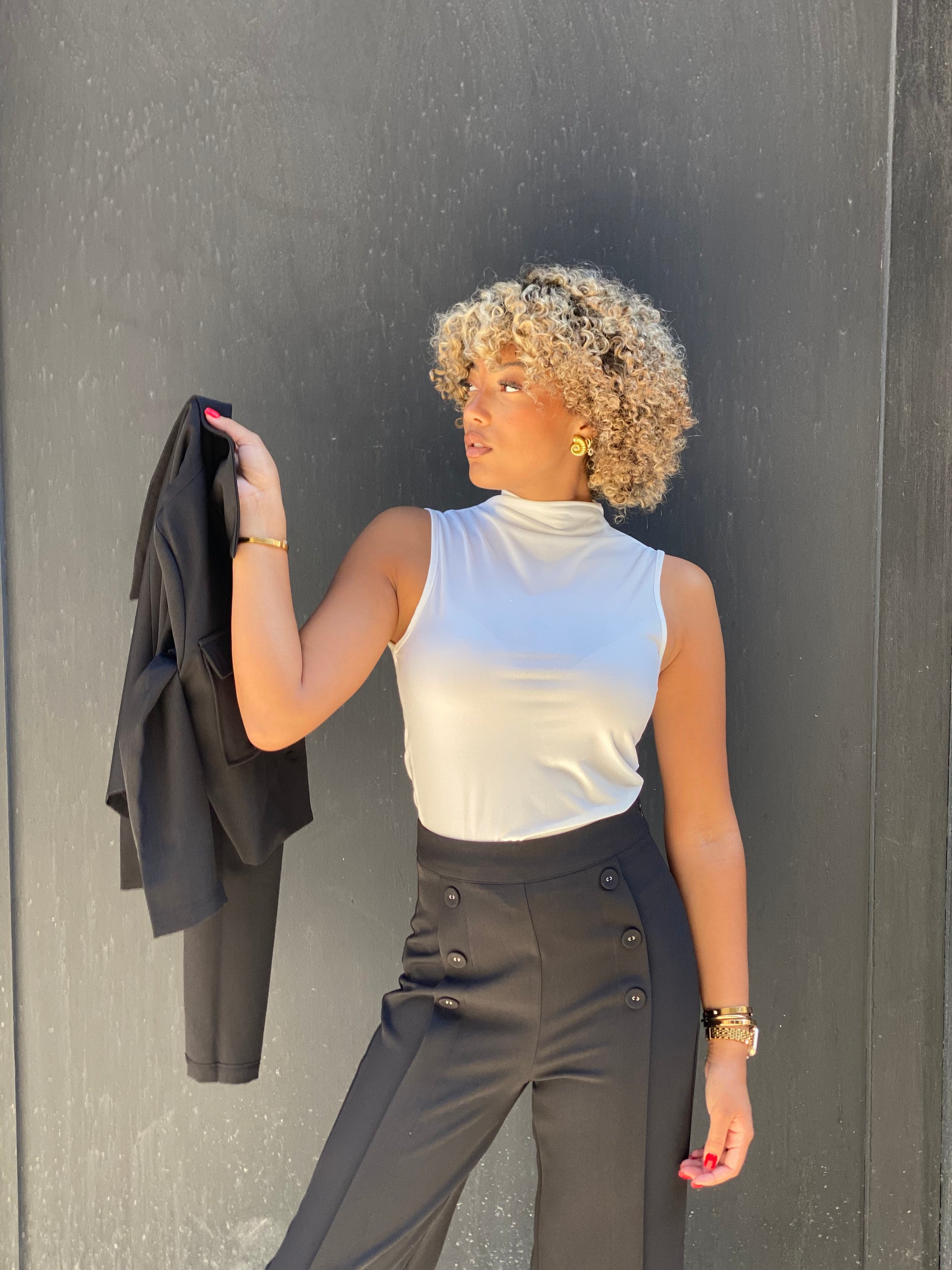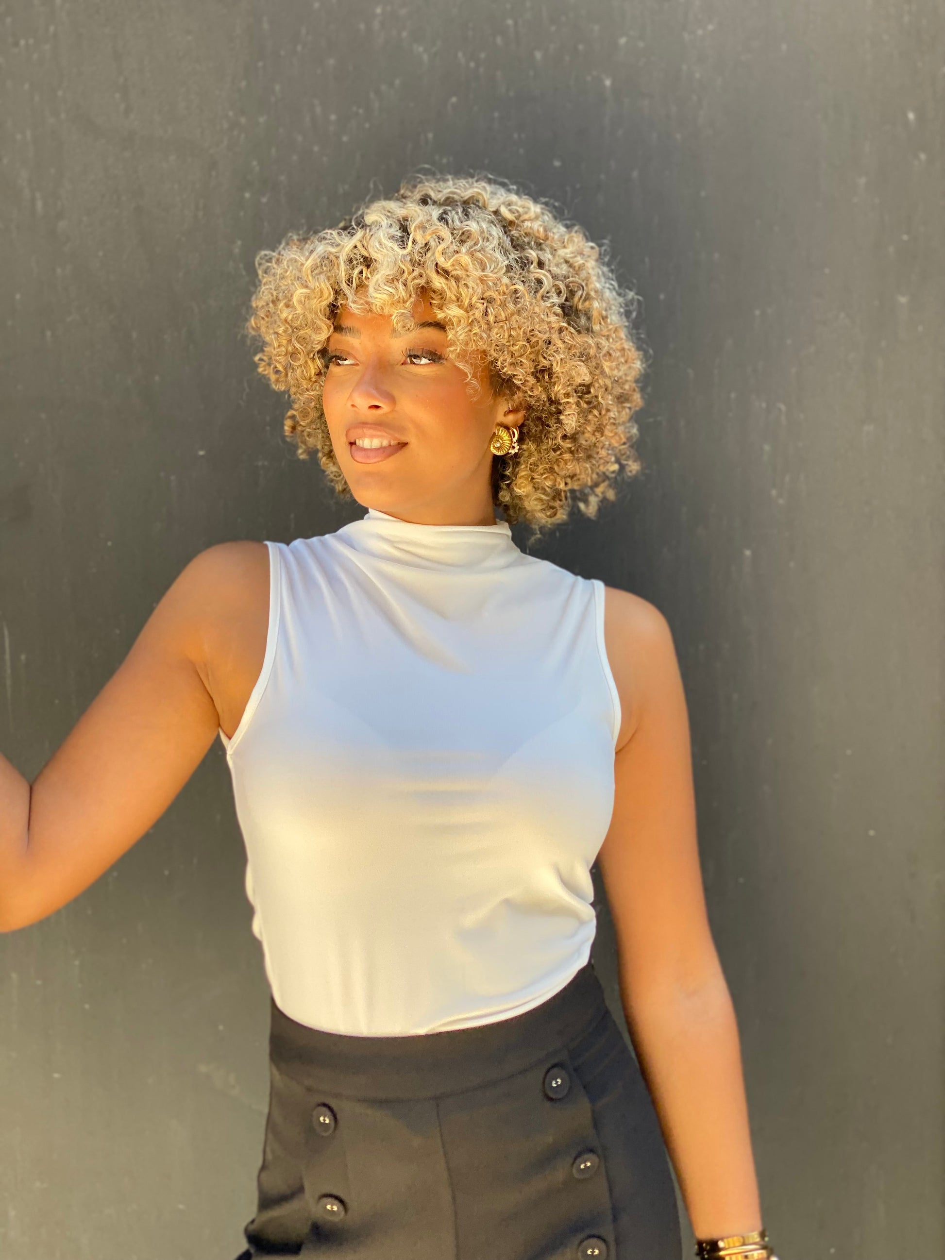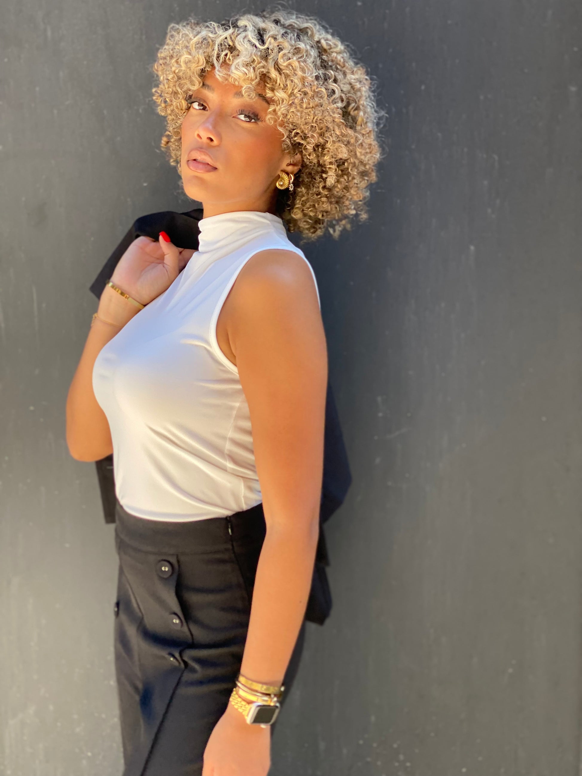 Petit débardeur, sans manches colletant, coupe droite près du corps, matière Lycra extensible