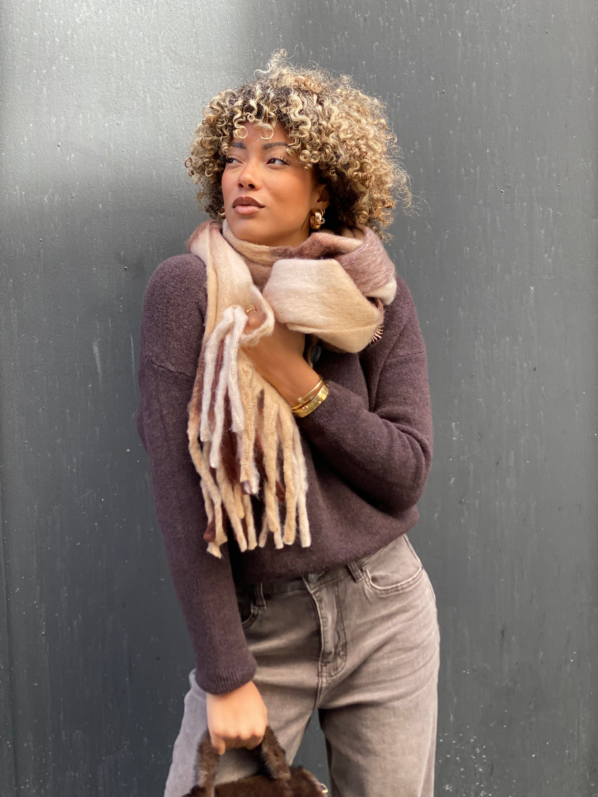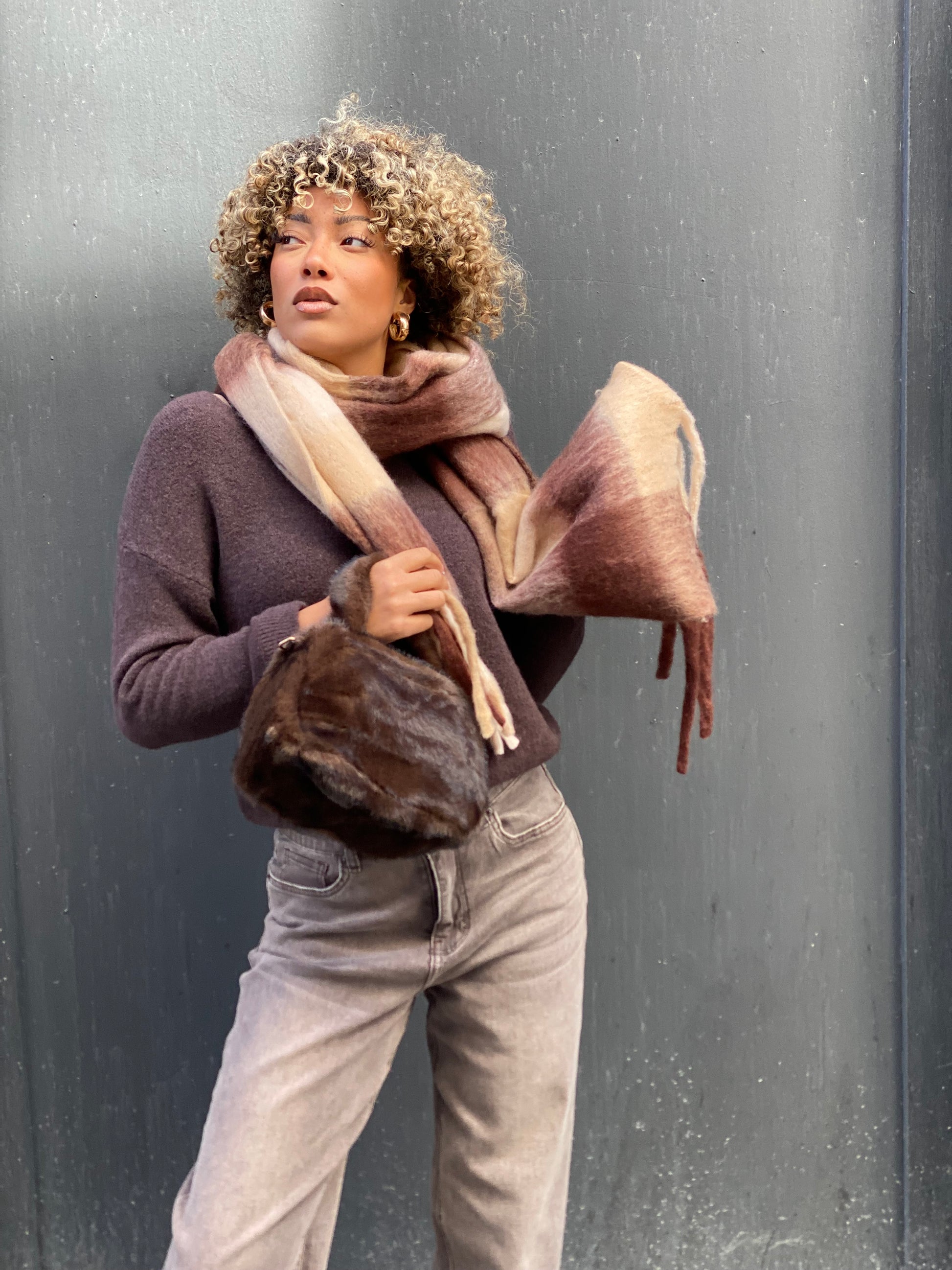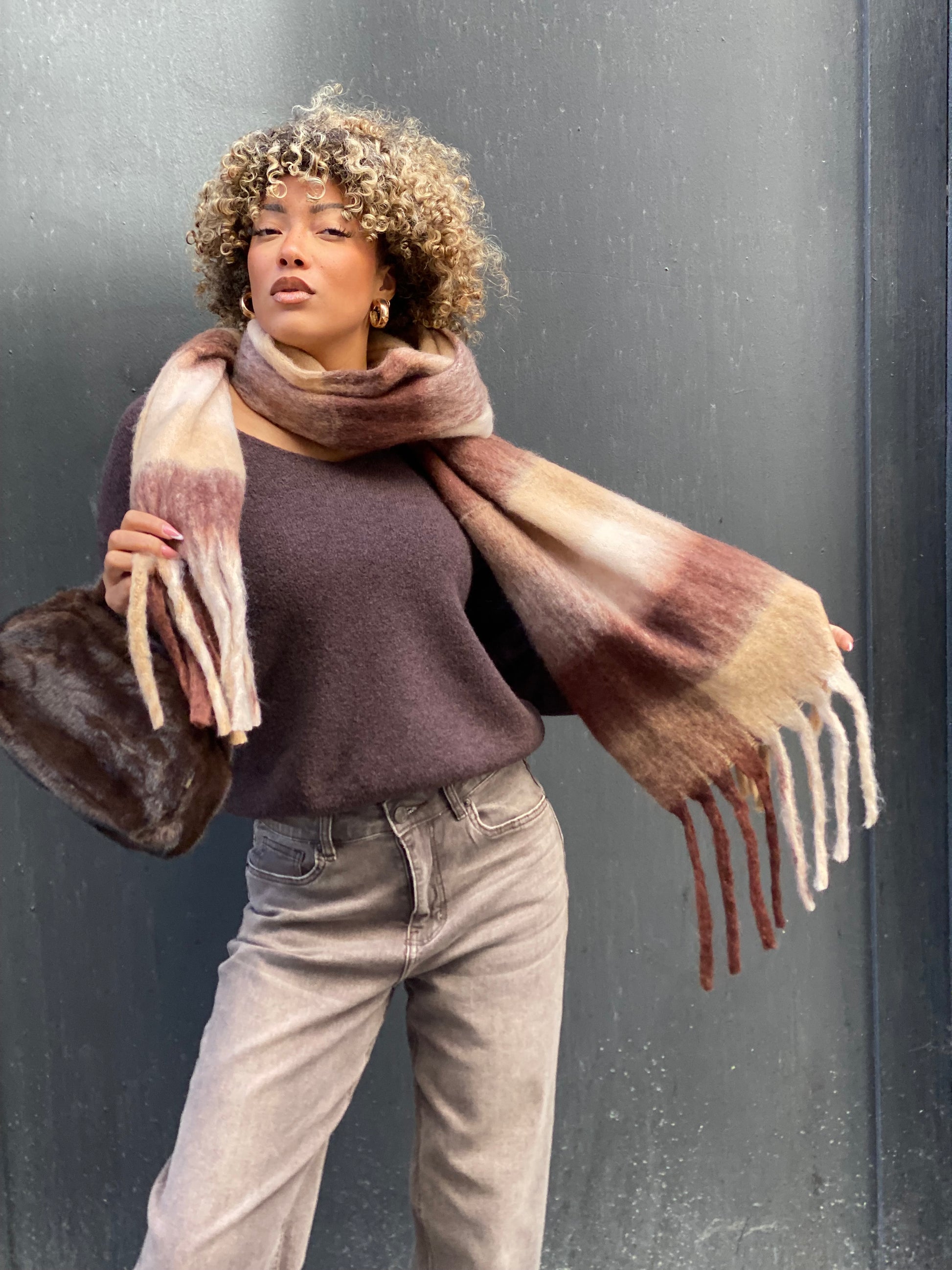 grande écharpe bien douce à carreaux dans les tons de bras et beige