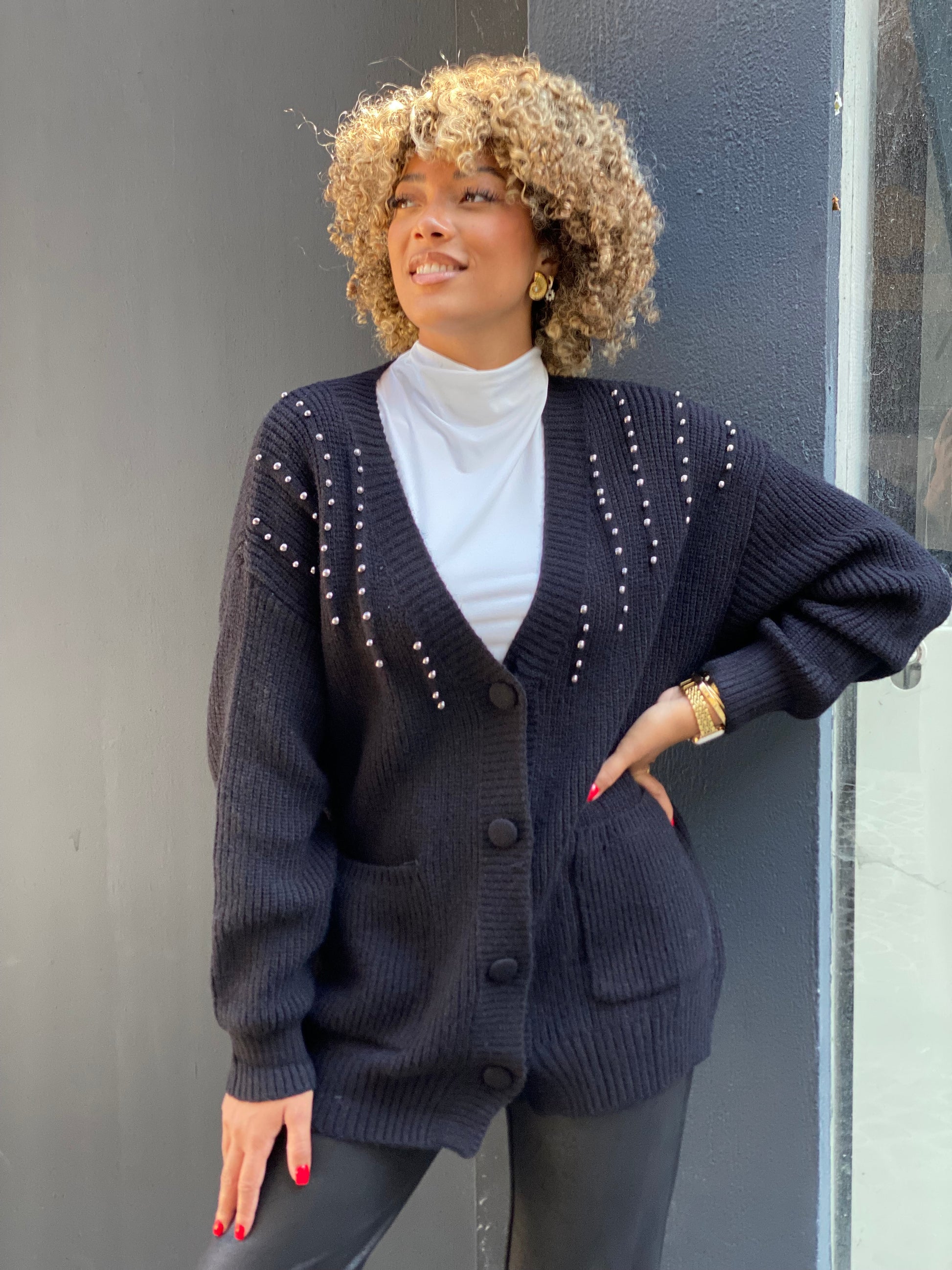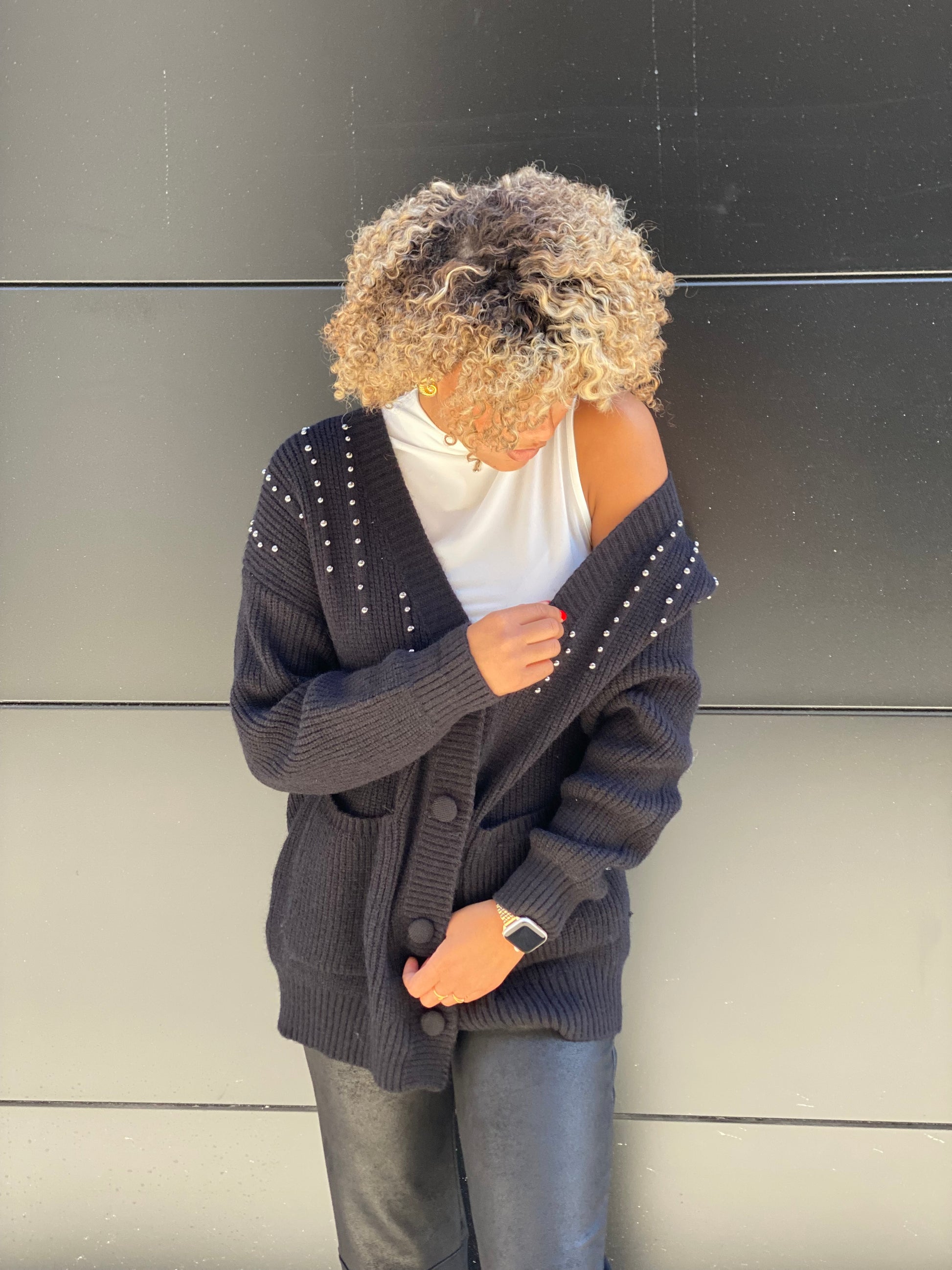 Gros gilet épais, Avec des boutons et deux poches , brodées de petits clous argentés