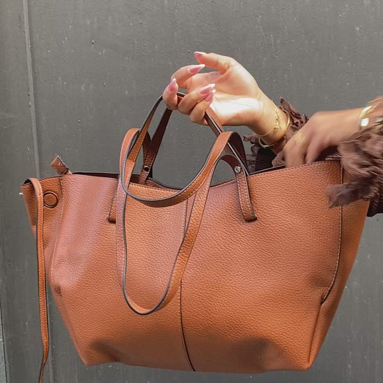Grand sac Camel, avec une petite lanière et une grande lanière, Forme un peu ovale avec un deuxième petit sac à l'intérieur bandoulière