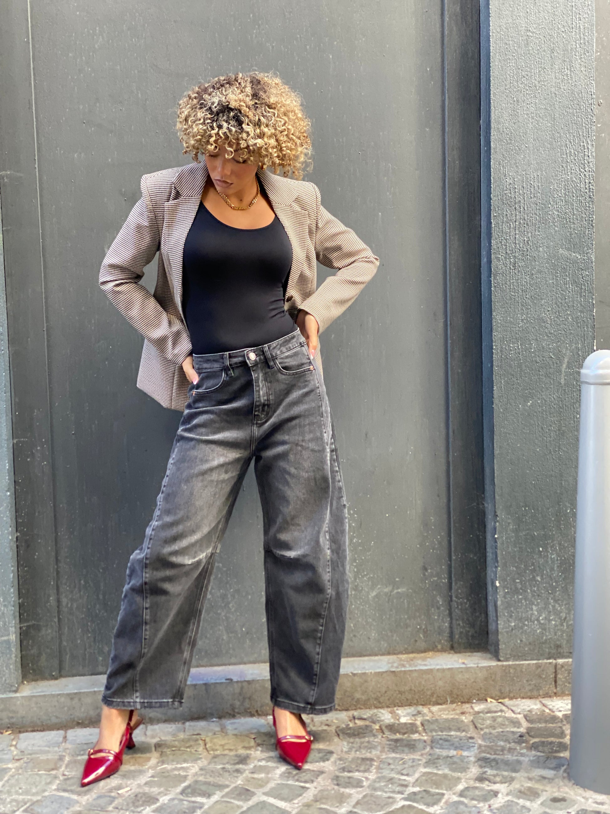 Nouveau jeans Barrel , C'est une coupe qui est plus large au niveau des cuisses et qui se resserre au niveau de la cheville