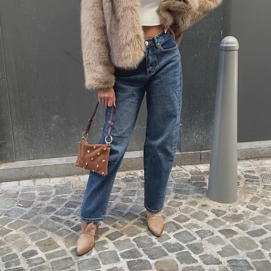 Nouvelle coupe de jeans Pharrell, coupe, ballon, bien repris à la taille large, au niveau des jambes et repris un peu vers le bas bleu. Jeans délavé moyen, deux poches devant deux poches derrière avec un peu de stretch.