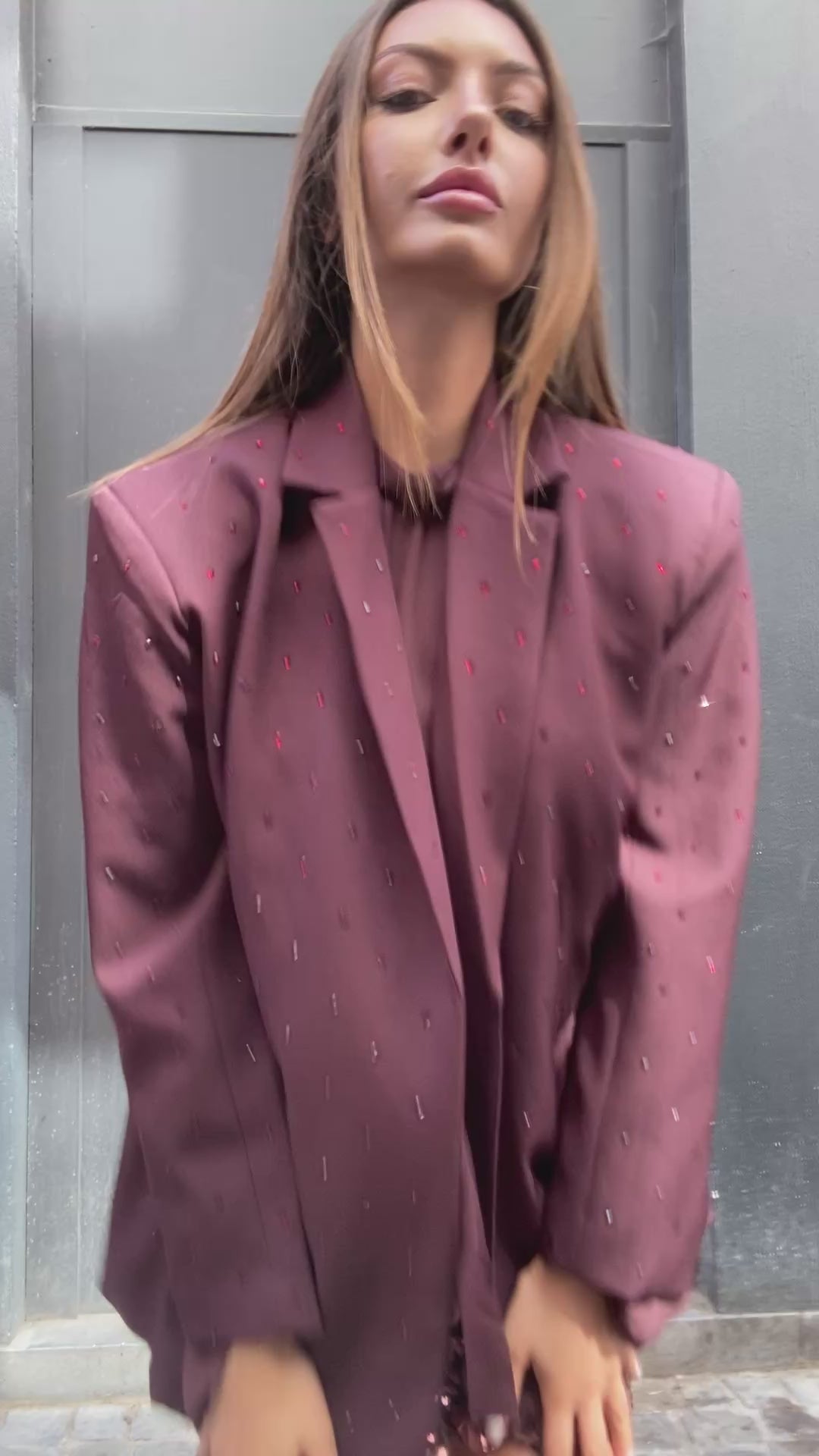Jupe courte, en sequin, couleur bordeaux, brun, Choco