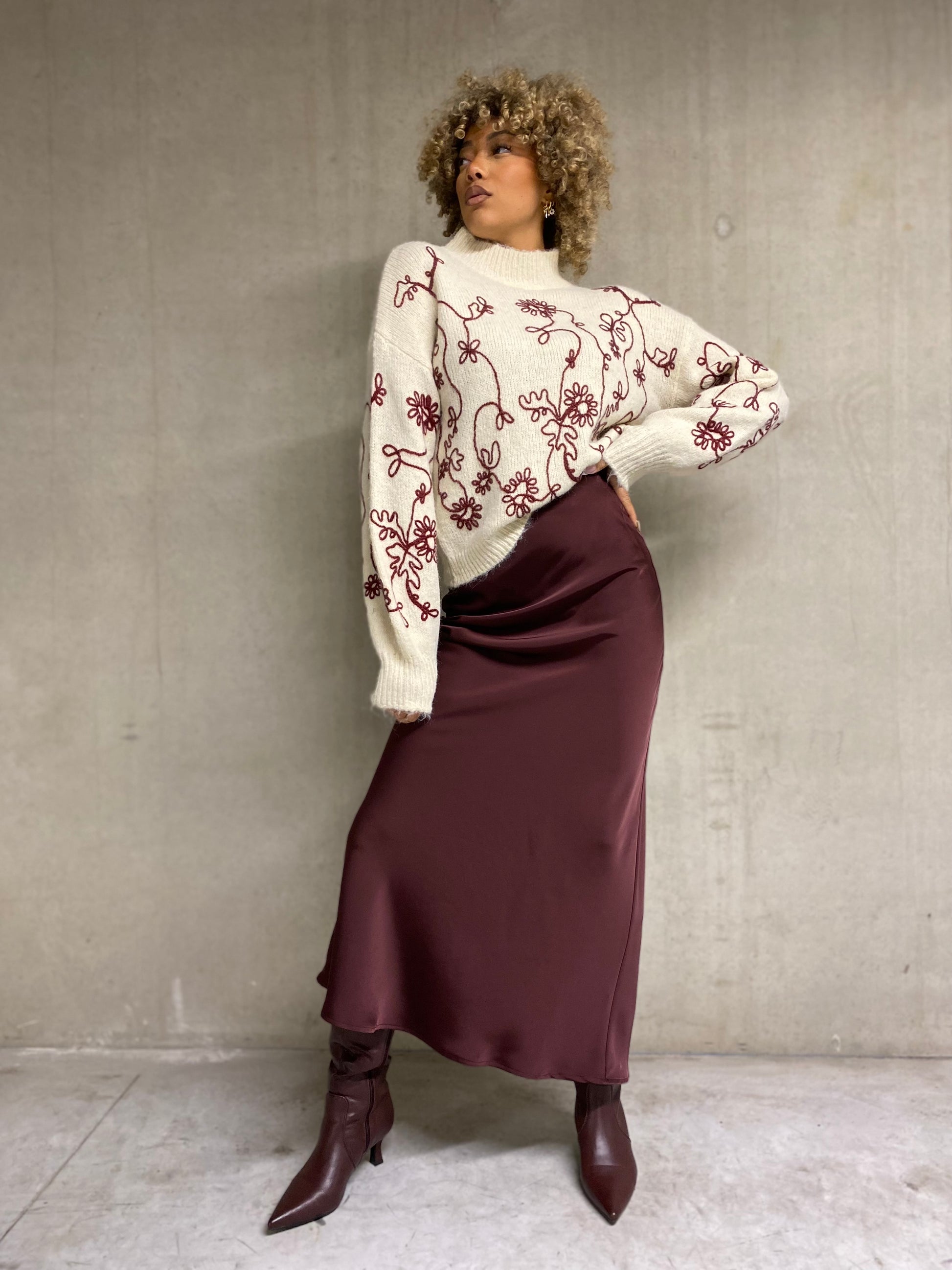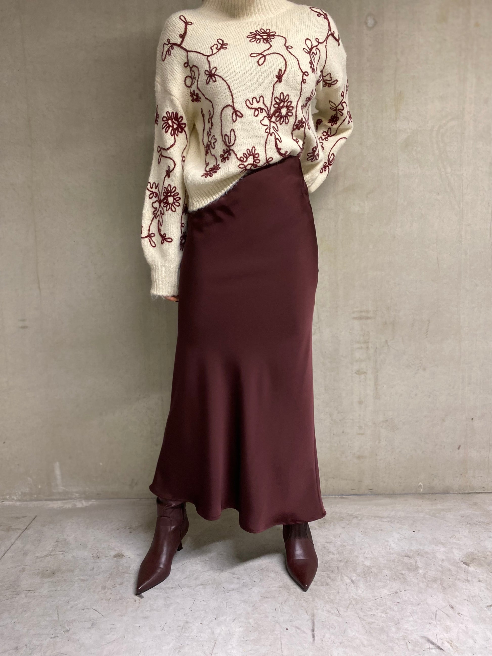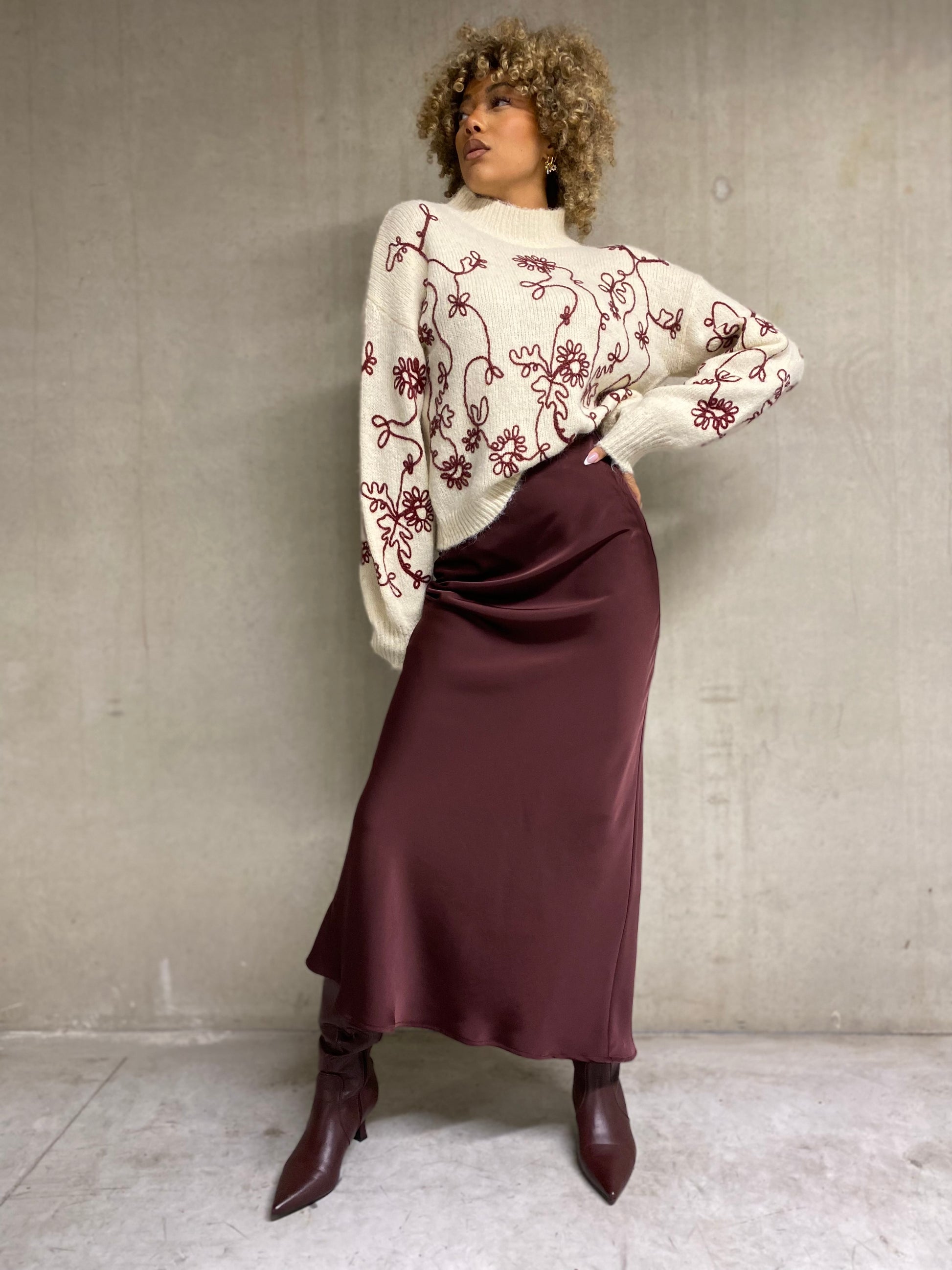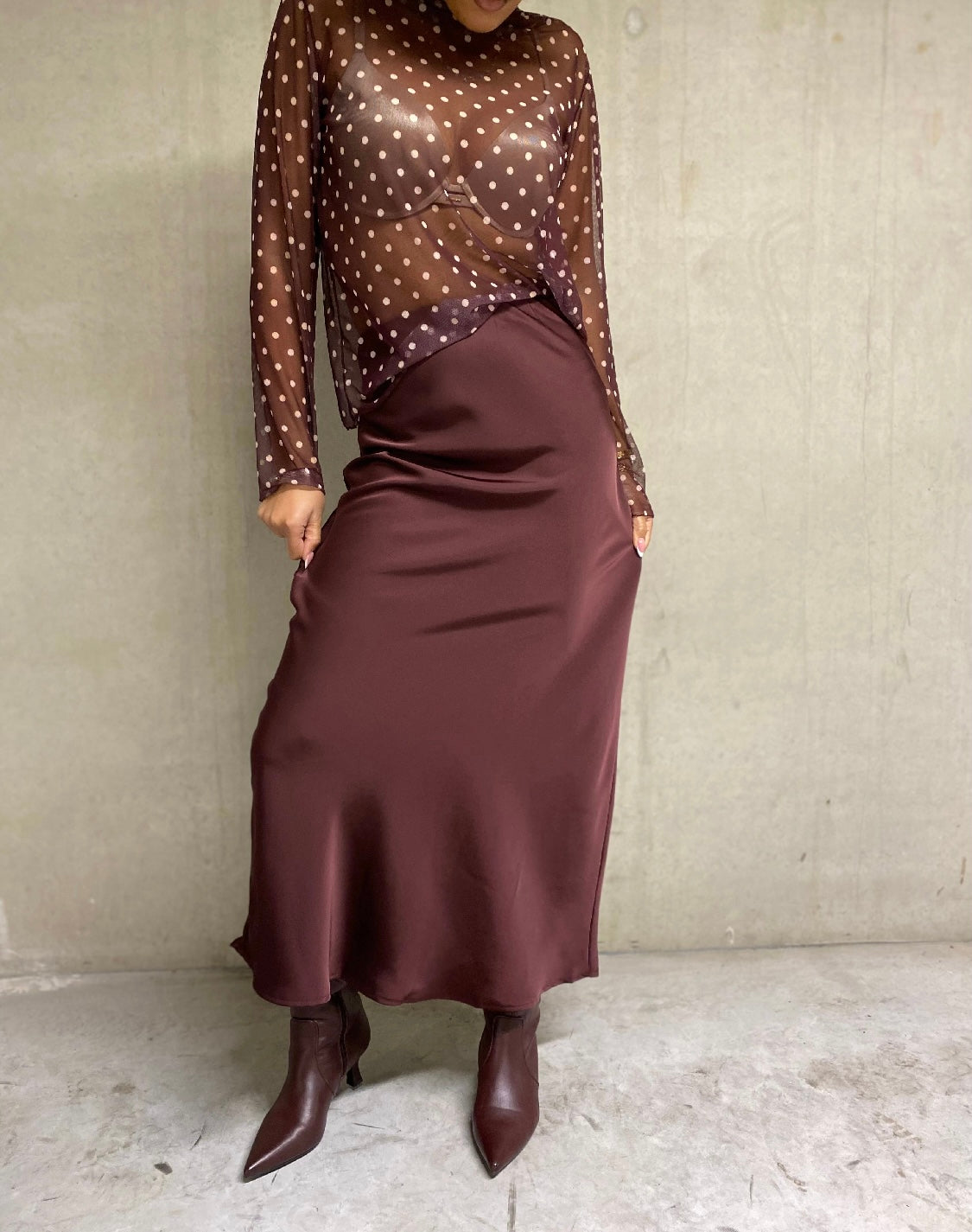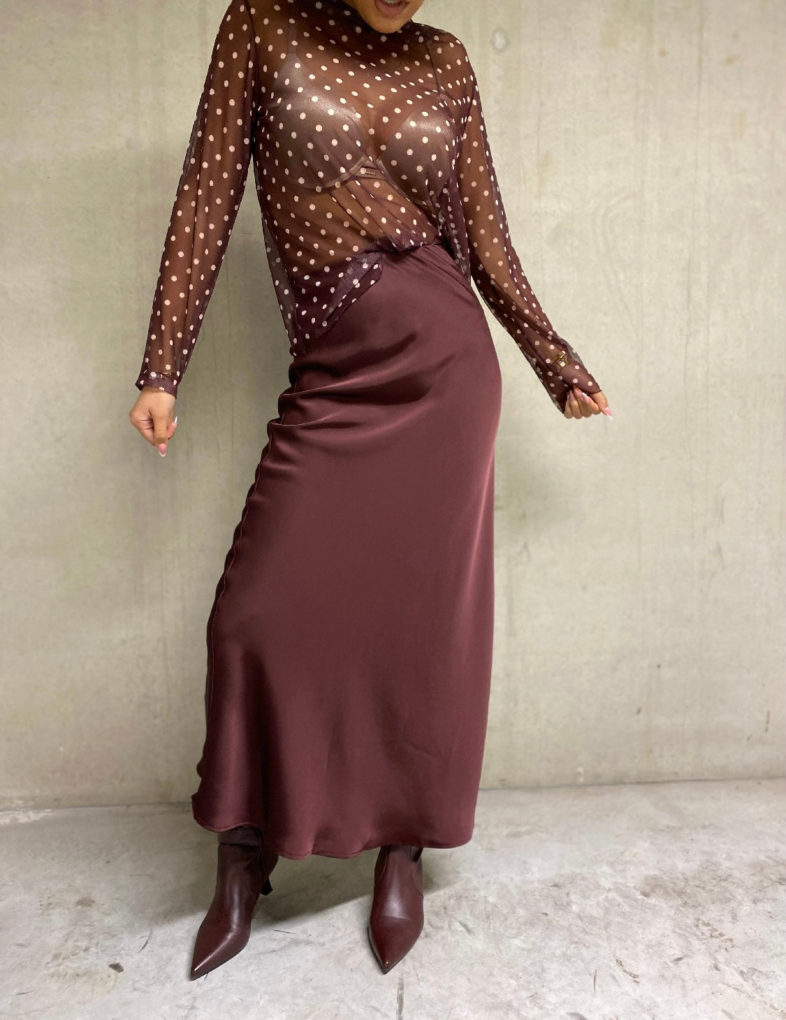 Superbe jupe longue en satin de très belle qualité, fluide et légèrement évasée dans le bas pour un tombé élégant. Sa taille élastique offre un confort optimal tout en mettant la silhouette en valeur. La couleur Bordeaux/Burgundy apporte une touche chic et raffinée à tous vos looks.
