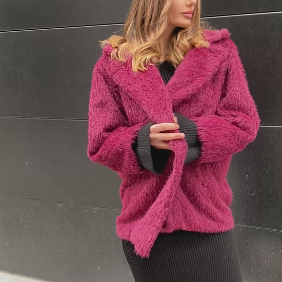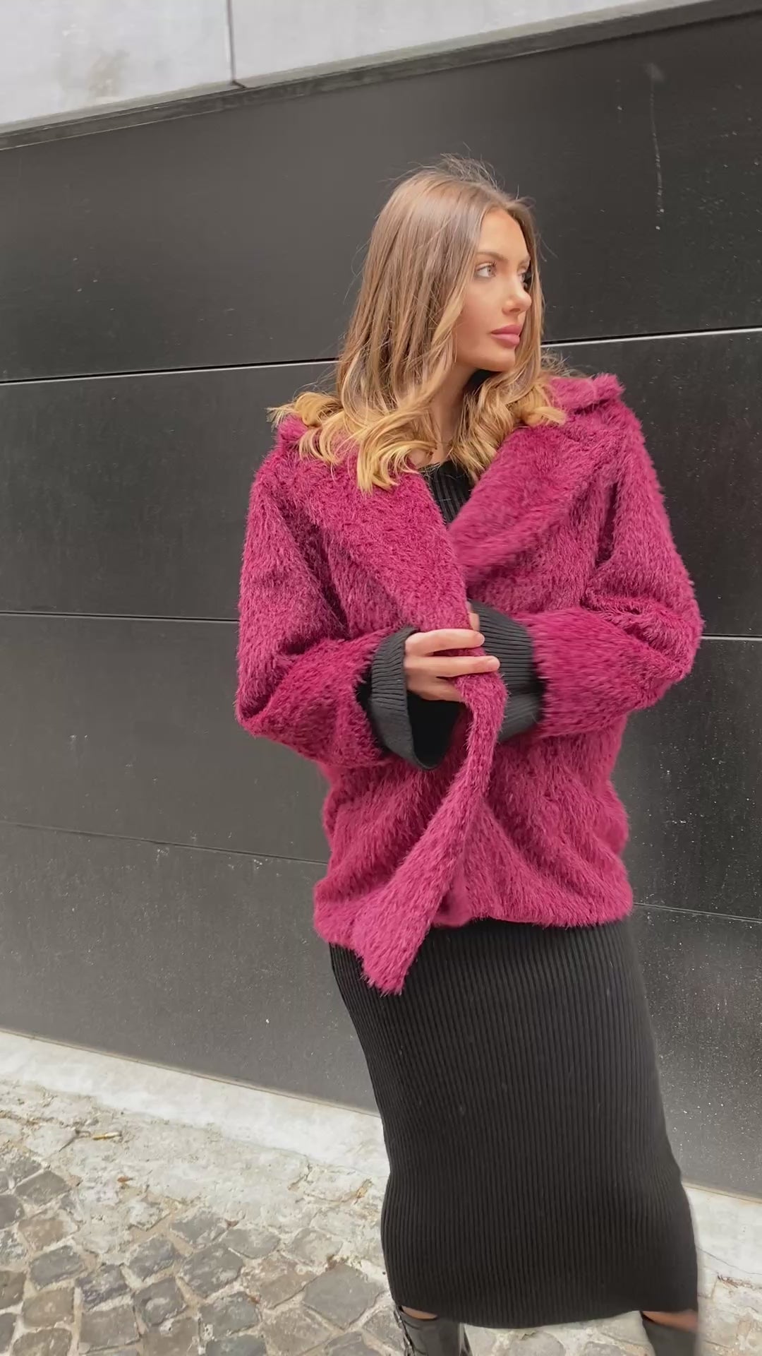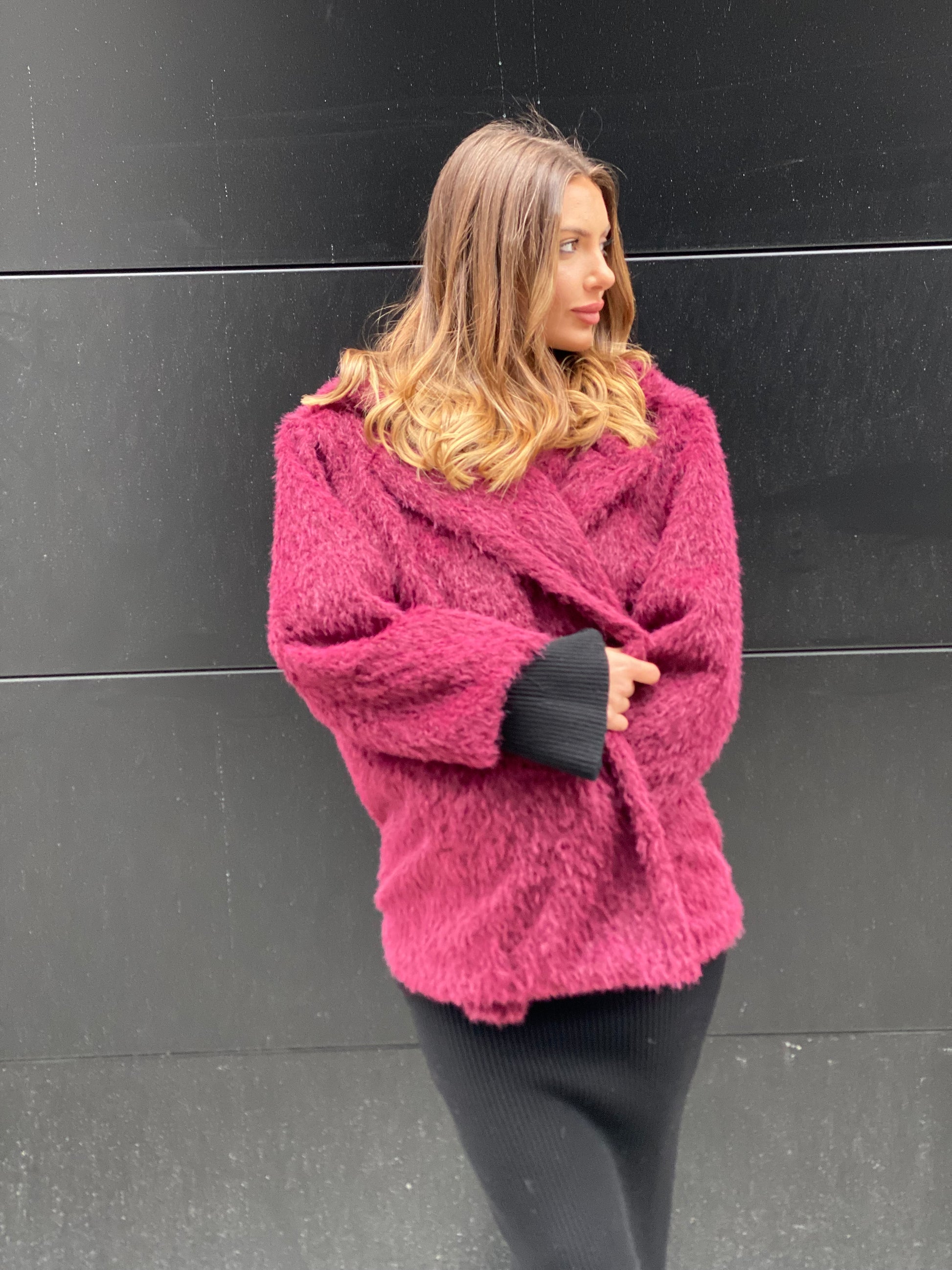 Manteau bien chaud, couleur bordeaux vif, croisé avec des boutons, deux poches doublé