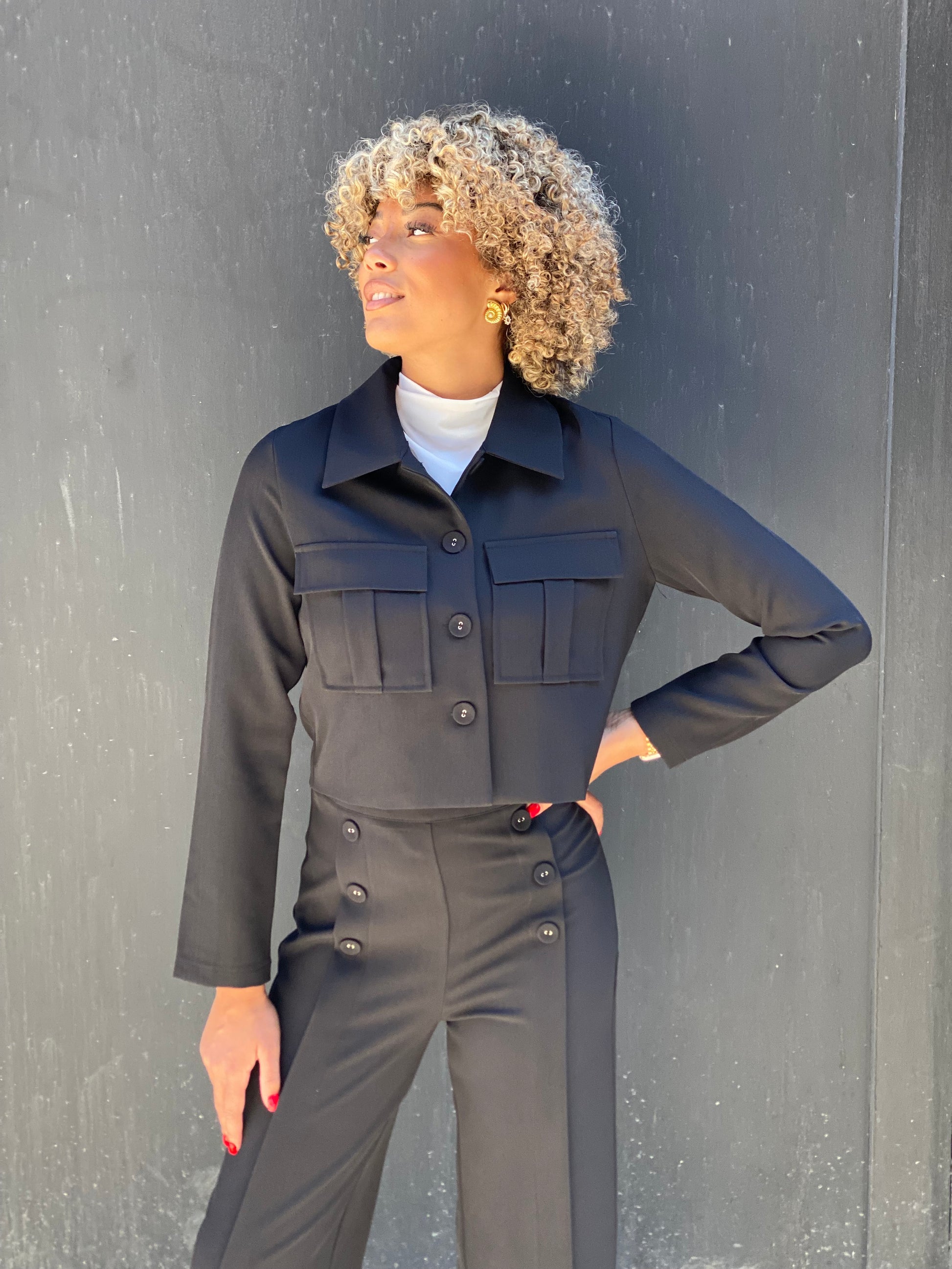 Pantalon classique, coupe droite un peu large avec des boutons sur l'avant du pantalon avec un pli très belle qualité. Matière classique avec un beau tombé peut s'associer avec la veste chic pour faire un ensemble complet.