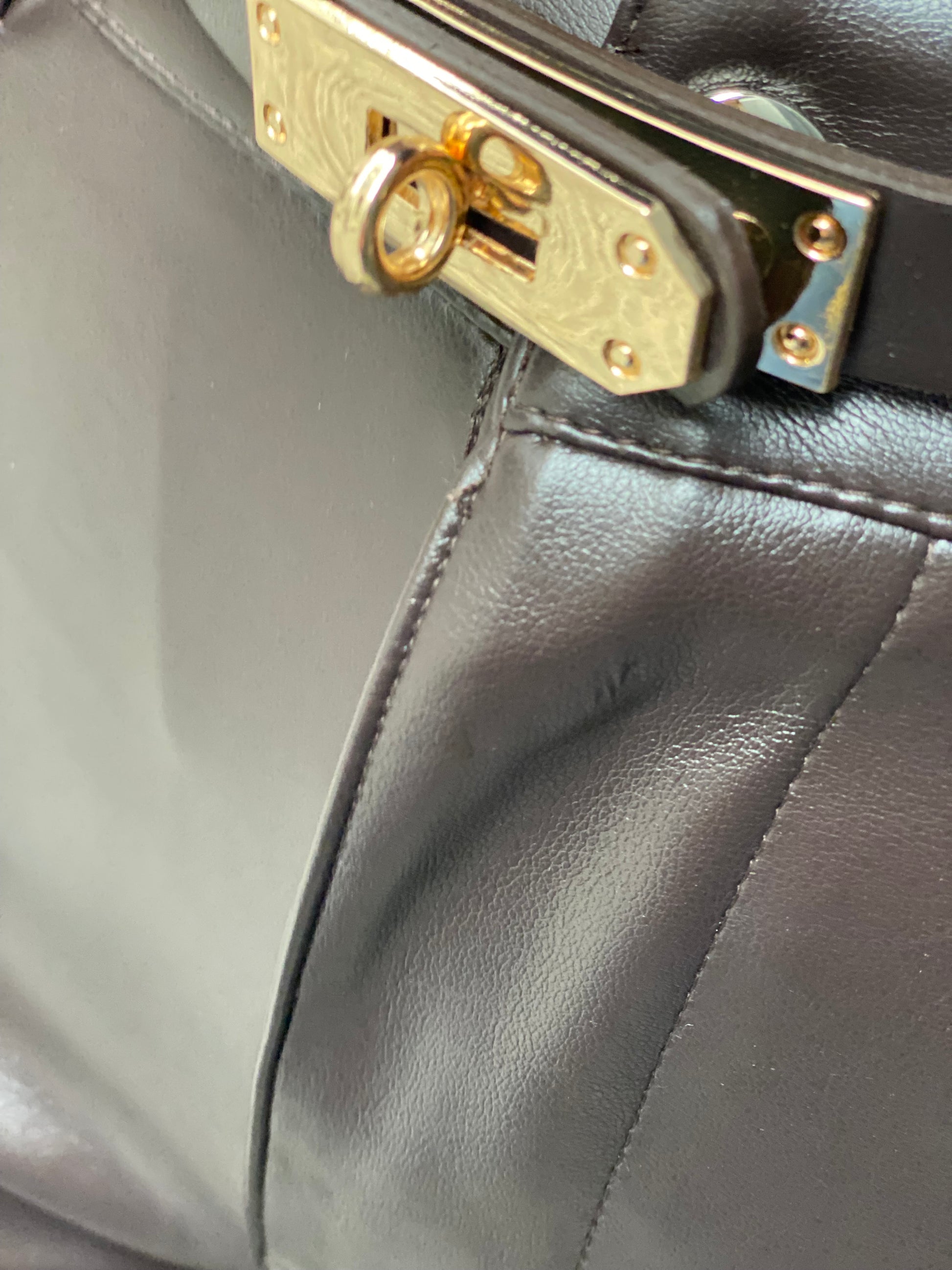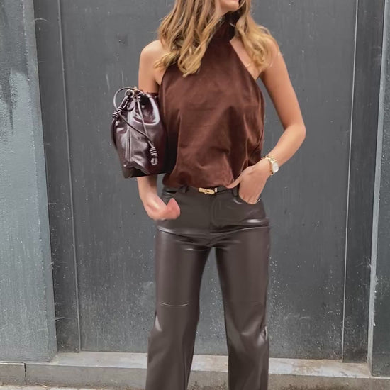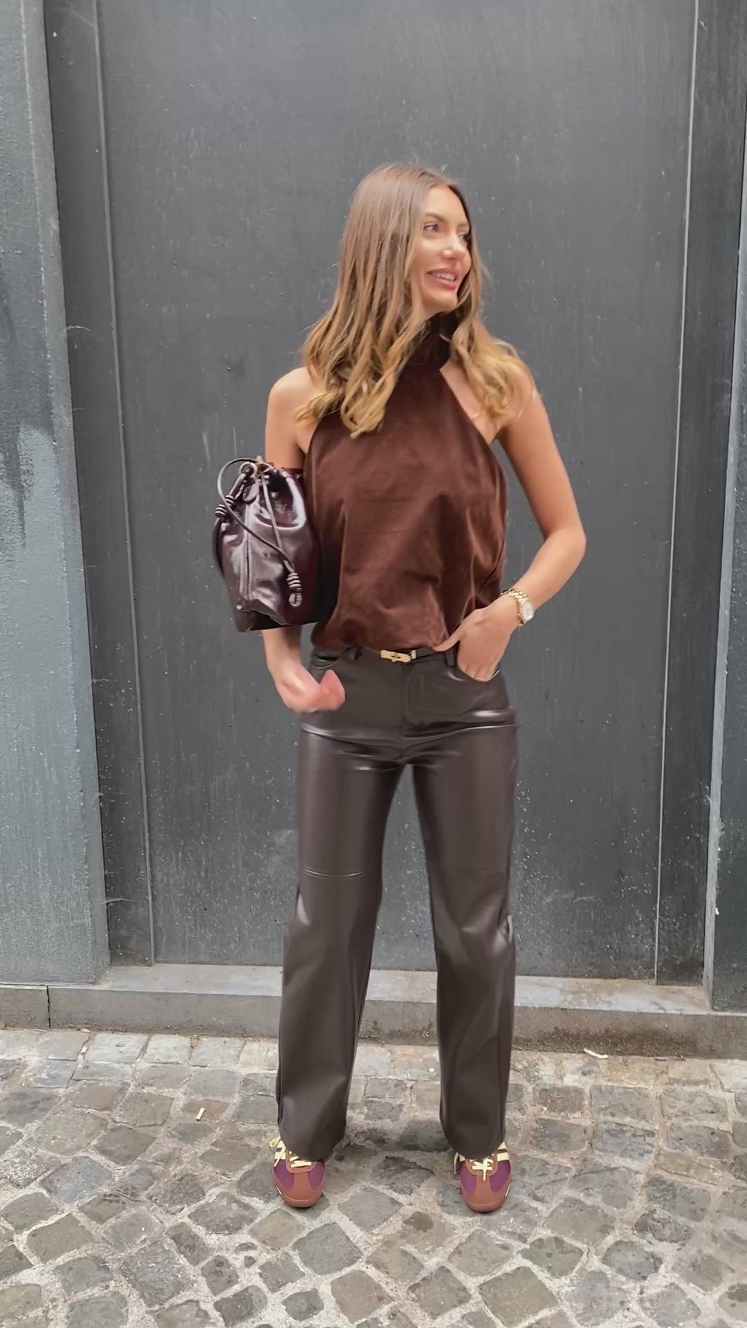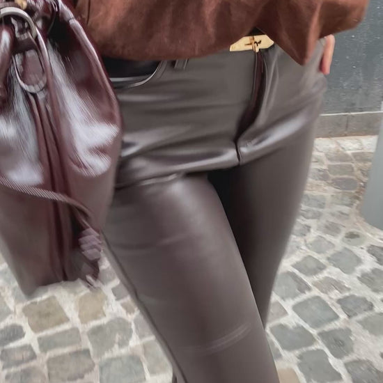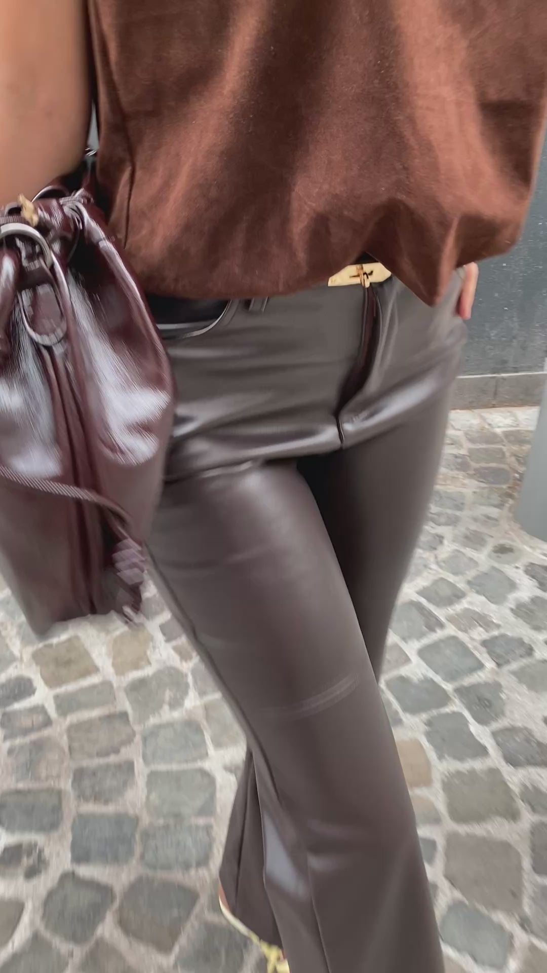 Très joli pantalon en similicuir, qualité supérieure, une belle coupe droite classique avec une jolie ceinture, une boucle dorée, qualité bien épaisse