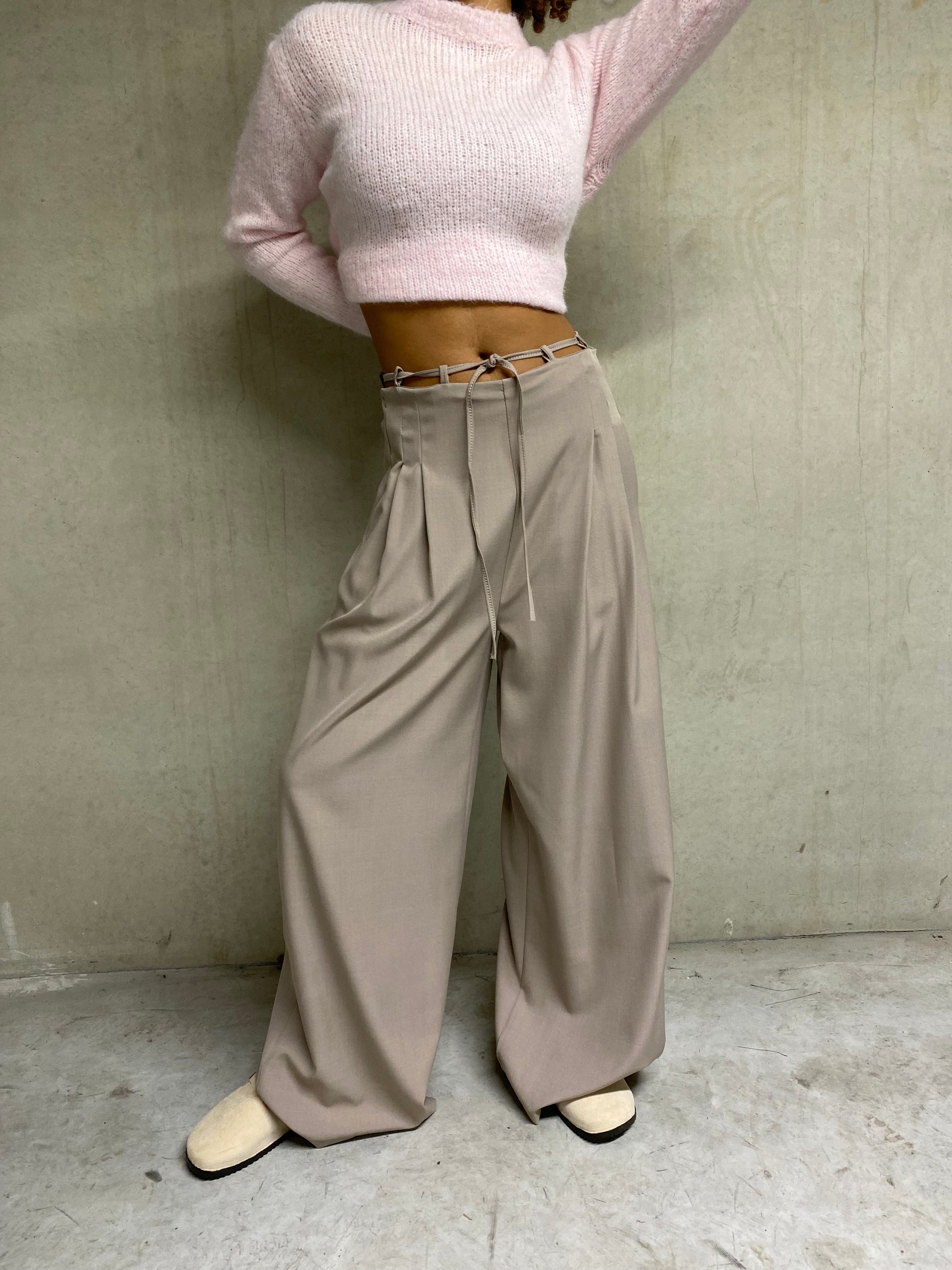 Pantalon large et fluide, conçu dans un magnifique tissu au tombé élégant et aérien. Sa coupe ample offre à la fois confort et allure moderne. Il se ferme à l’arrière par une discrète tirette pour une finition soignée. À l’avant, de petites passes décoratives viennent structurer la silhouette, tandis que des poches pratiques ajoutent une touche fonctionnelle.