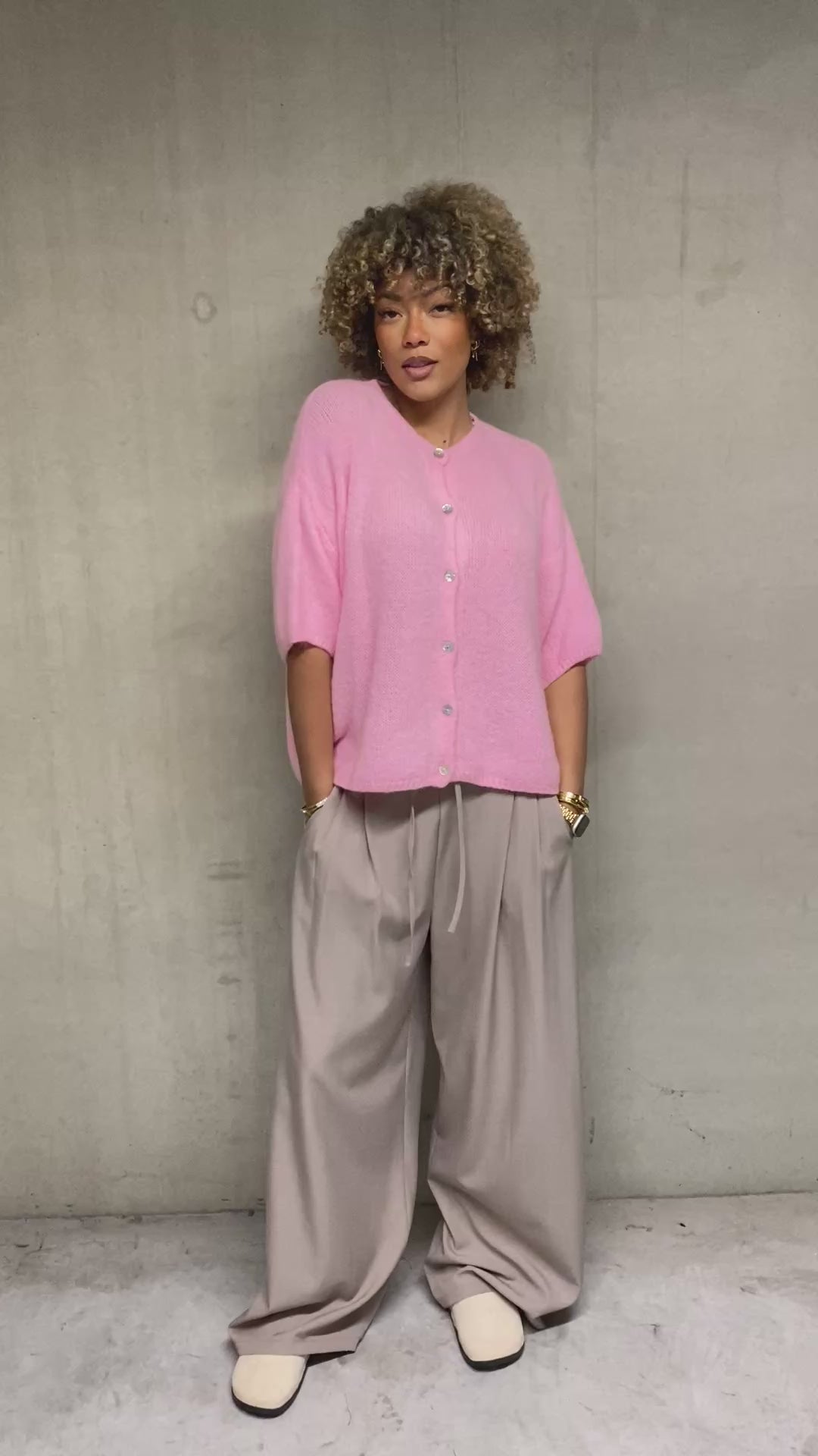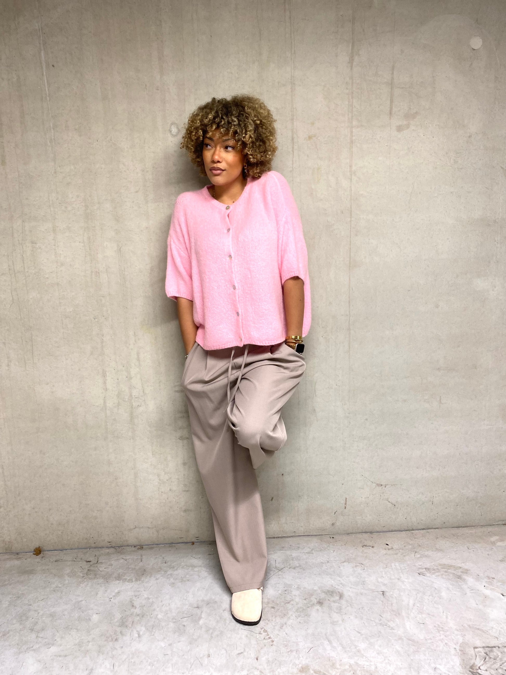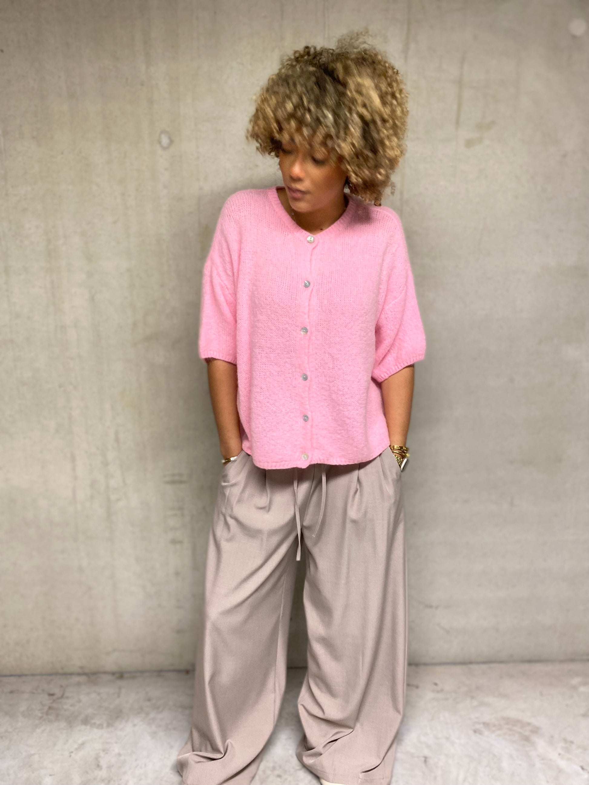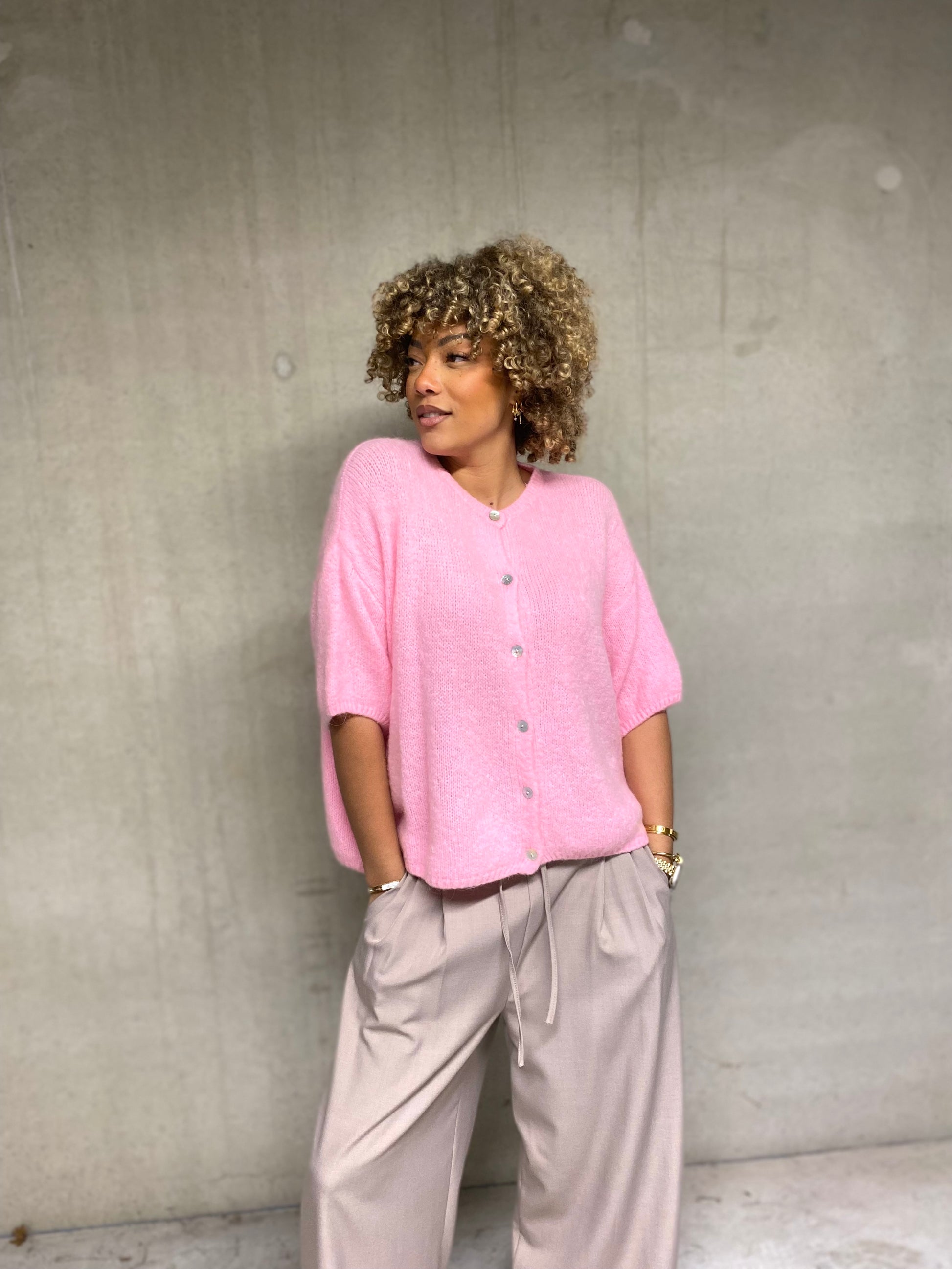 Il se distingue par ses boutons, en acre, qui apporte une touche et élégantes et raffinée. Sa tête rose bon, très frais et tendance, s'accorde fasciné facilement avec de nombreuses tenues, taille unique, une pièce chic, douce et facile à porter au quotidien.