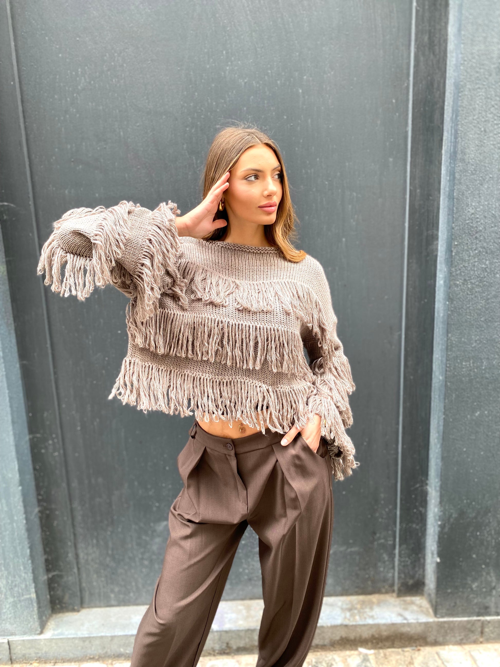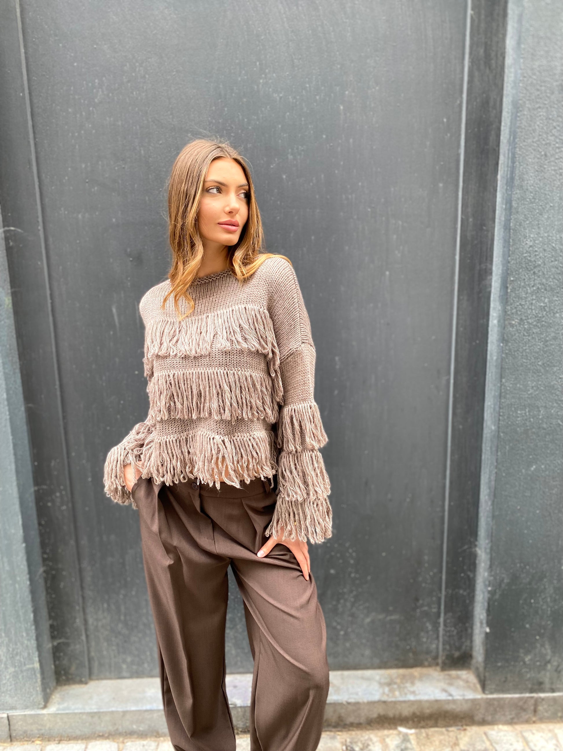 Pull en laine avec des floches de laine