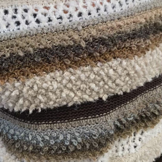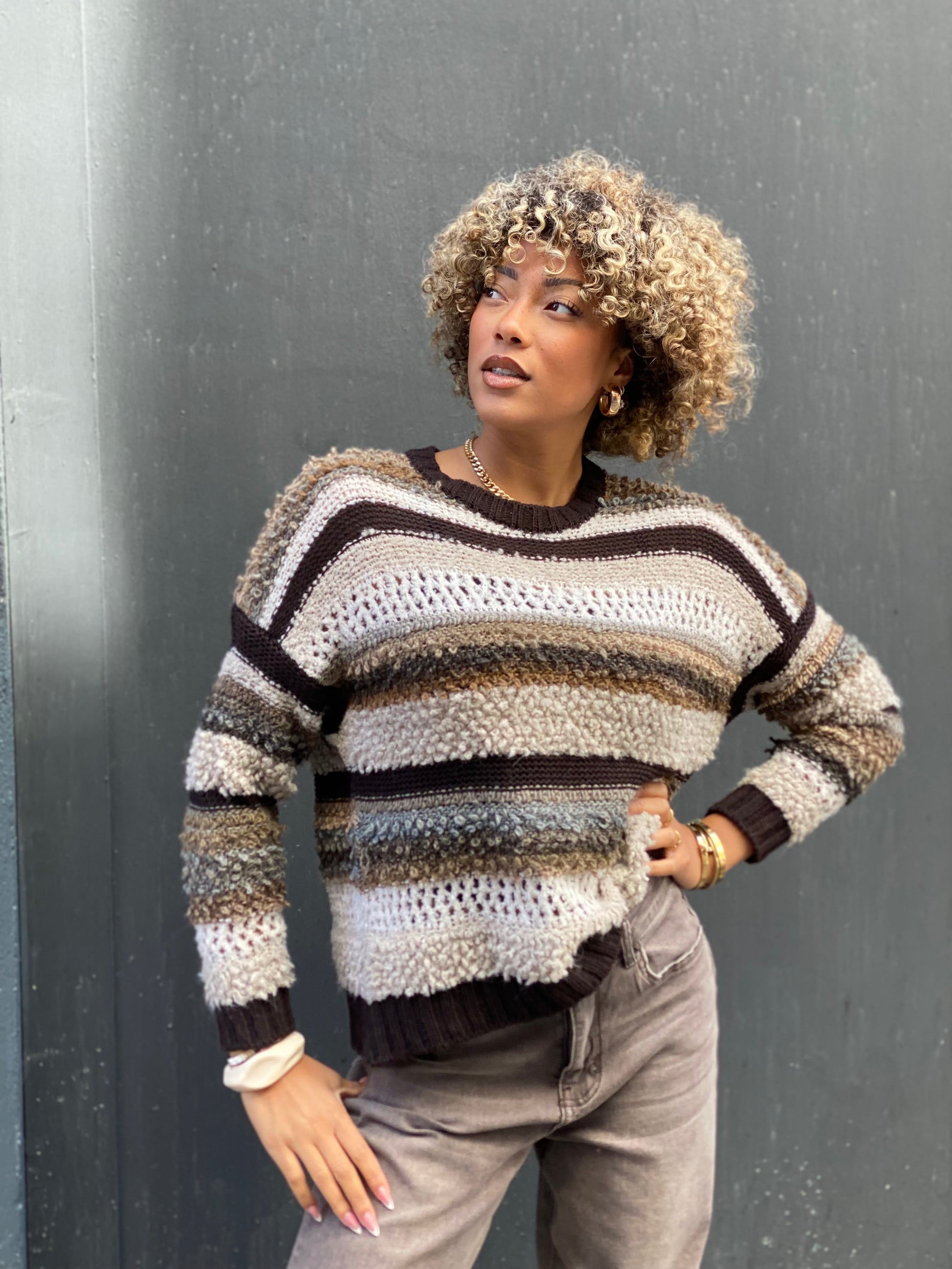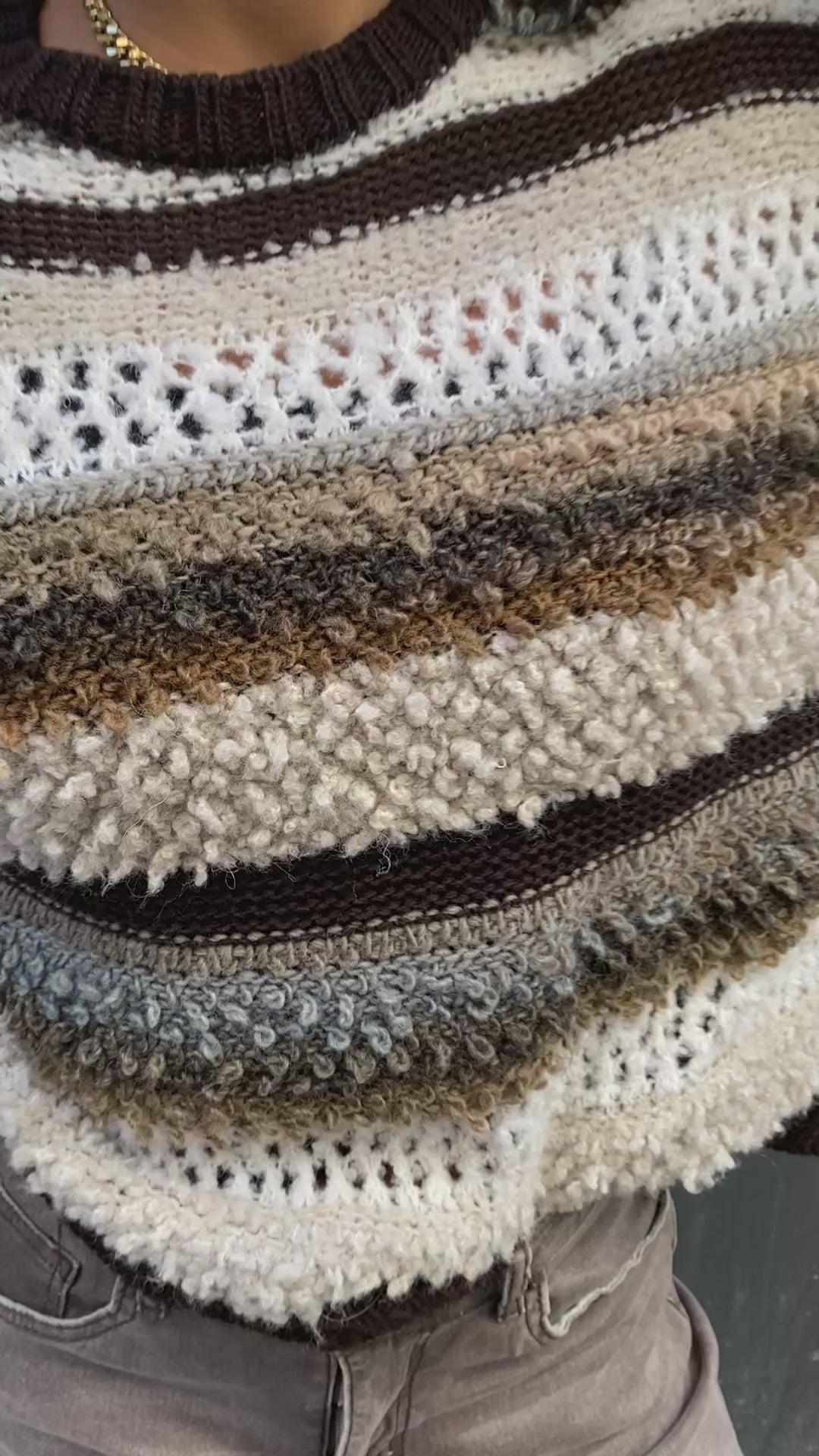 Magnifique, pull en lainage de différents tons de brun, taupe, matière lainage, bouclettes