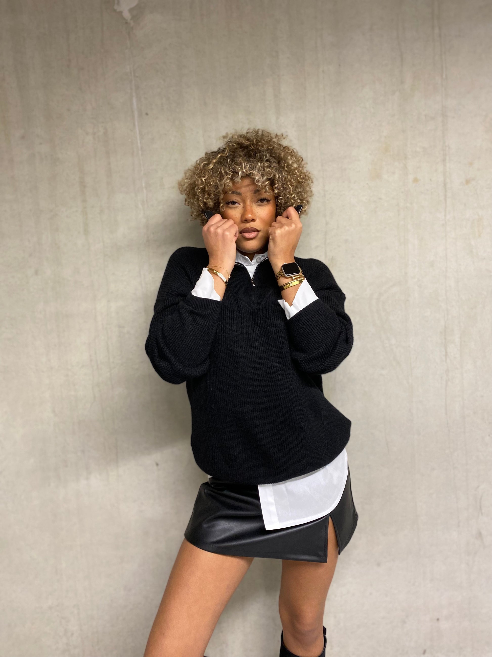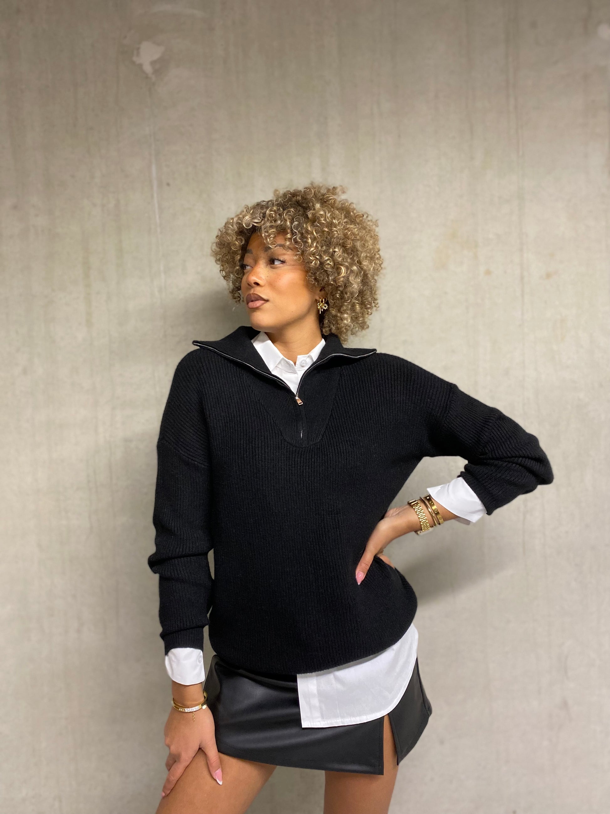 Pull en lainage finement côtelé avec un col montrant cheminée avec une tirette coupe droite, un peu large, super matière, bien douce et bien chaude
