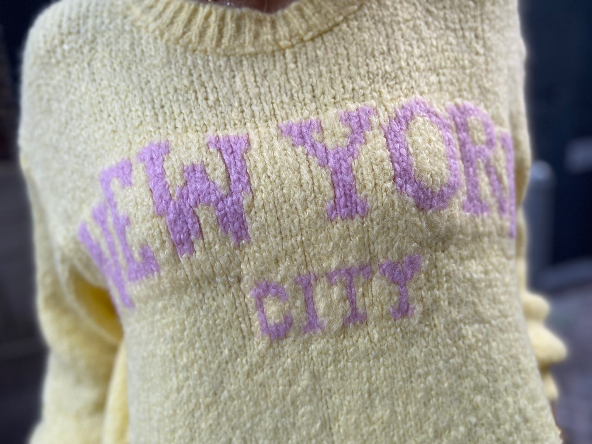 - Inscription “New York City” en rose bonbon pour une touche tendance et féminine