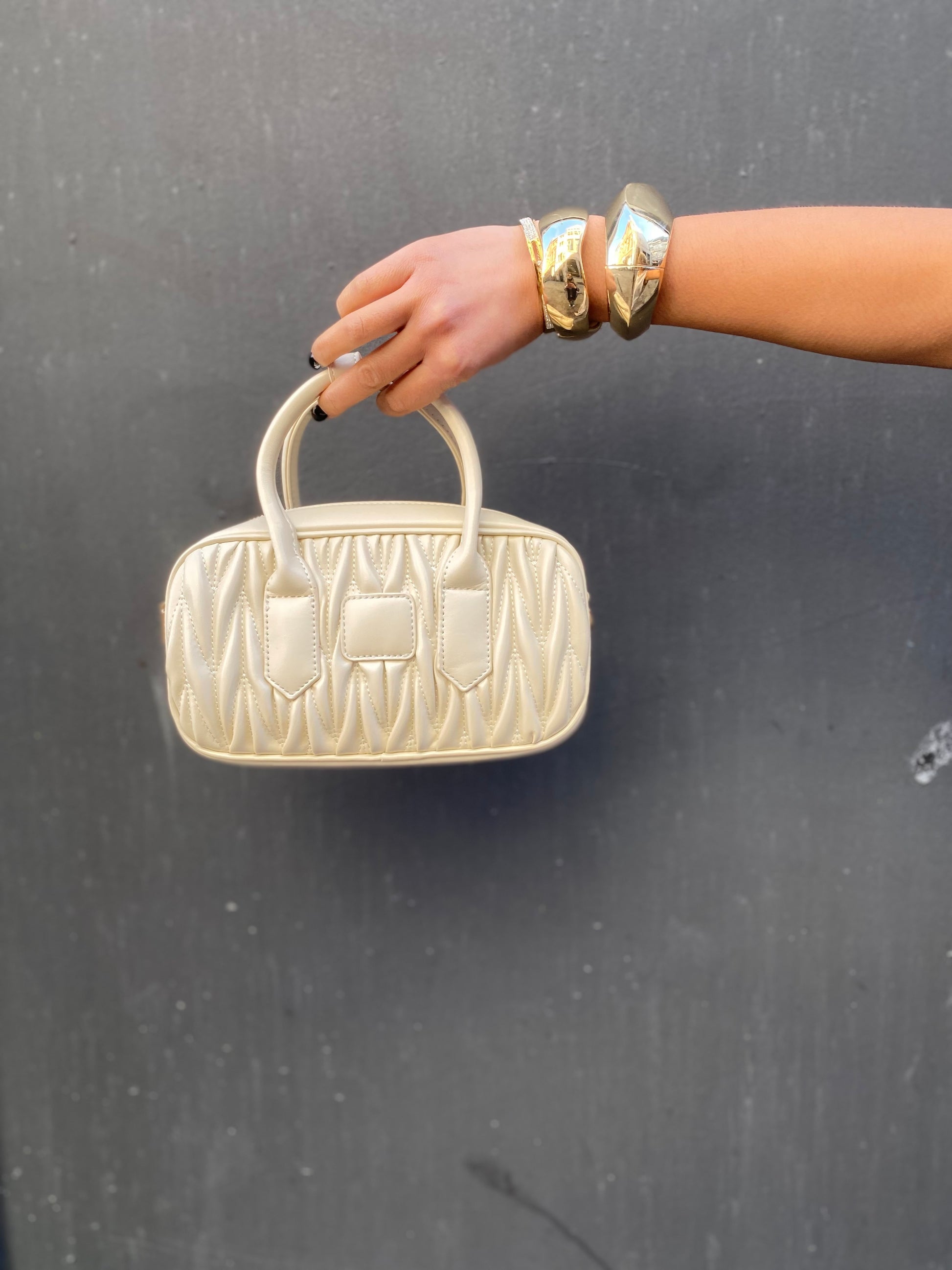 Joli petit sac beige avec une lanière qu'on peut porter en boîte lierre. C'est en cuir simili il est aspiré de la marque Miumiu très joli qualité.