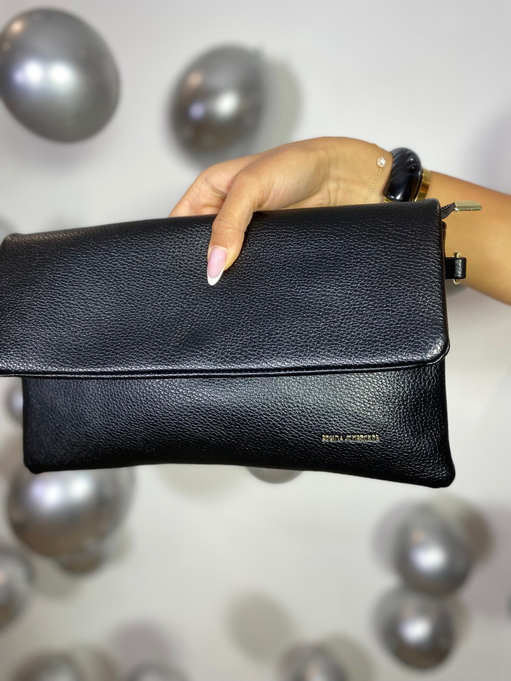 Sac pochette avec une bandoulière à l'intérieur noire, avec une inscription de la marque Regina
