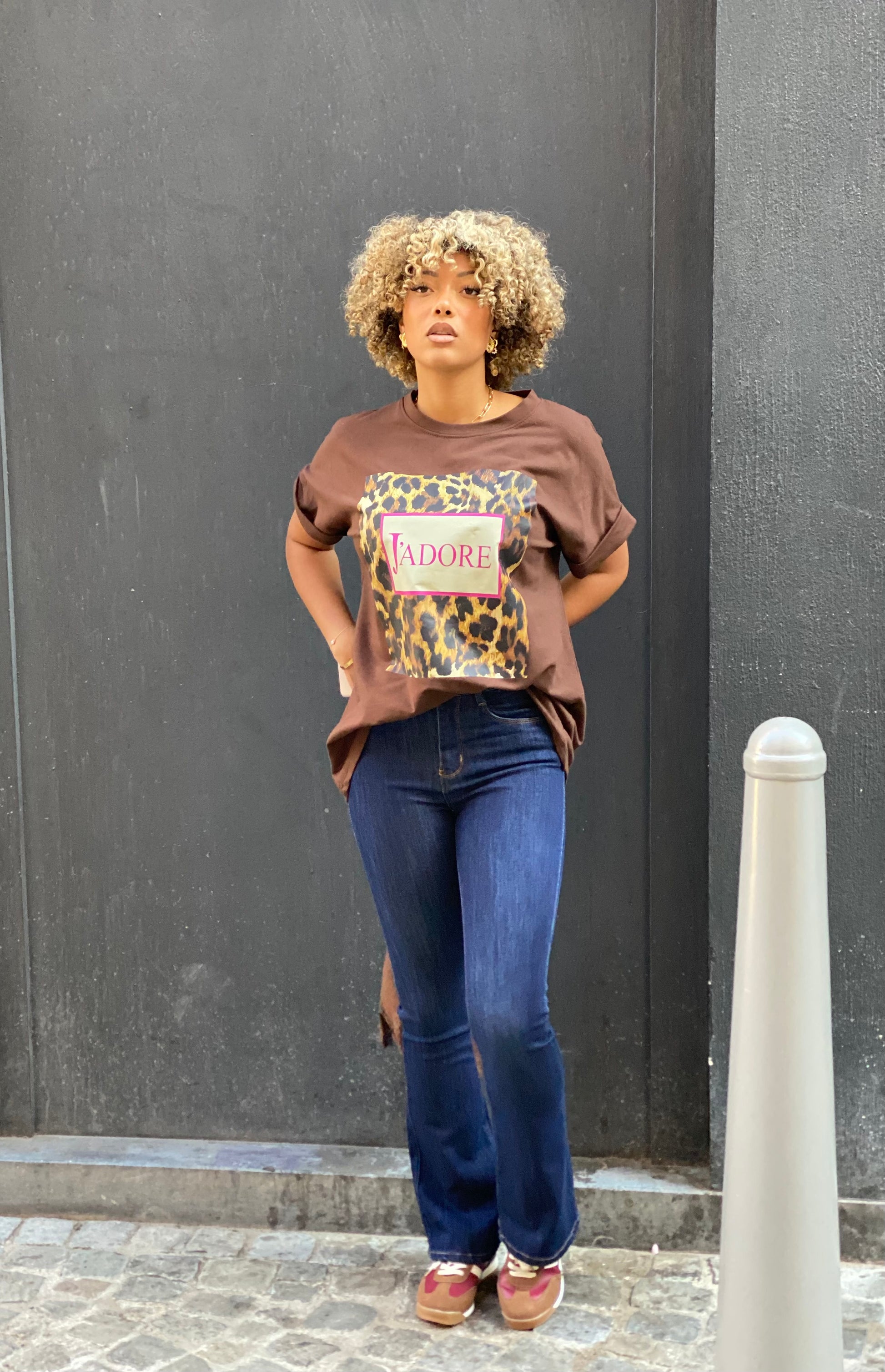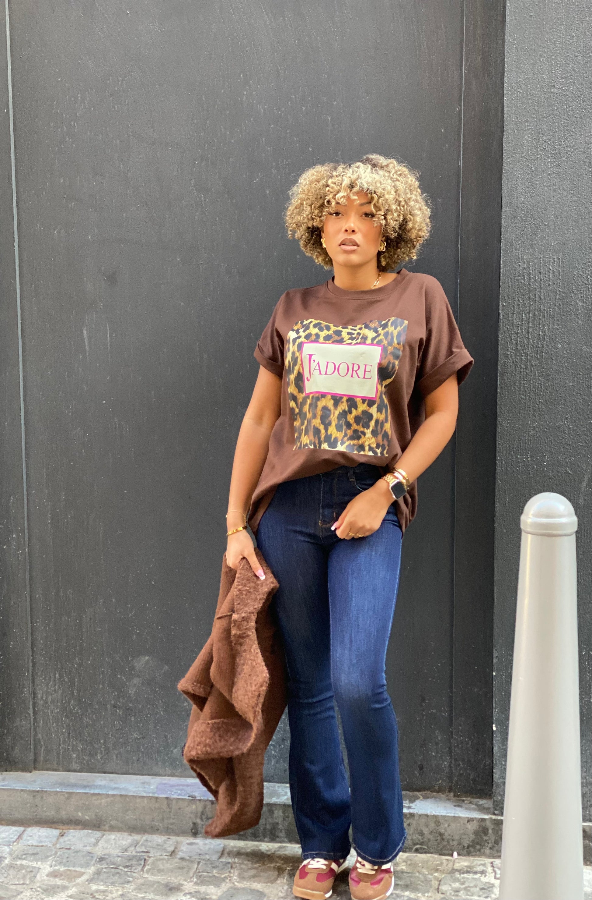 Avec un grand imprimé léopard et une inscription. J'adore.