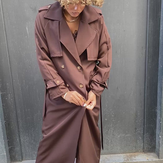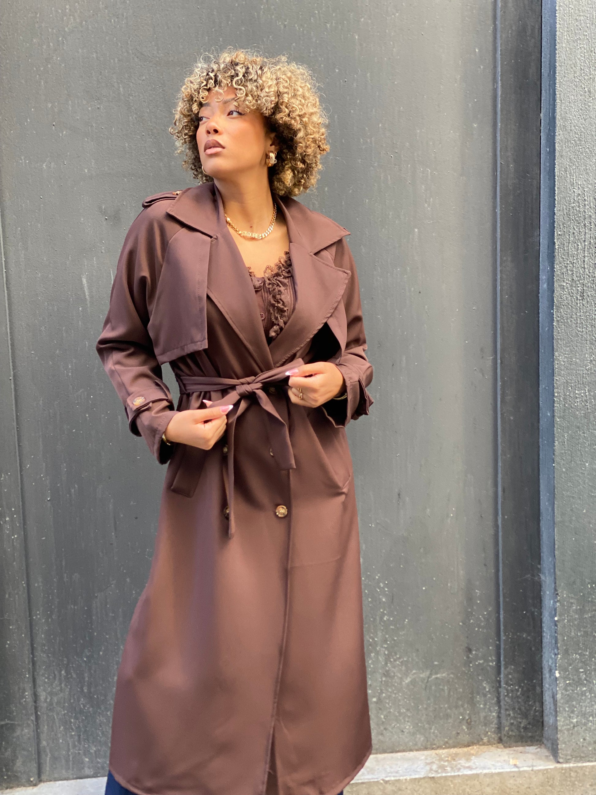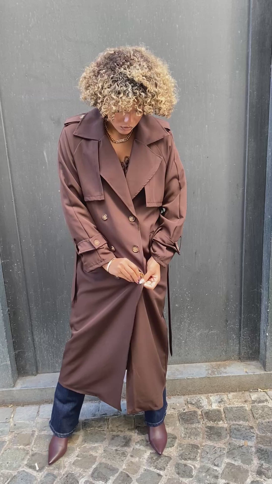 Long manteaustyle imper trench classique avec des poches, une ceinture boutonné. C'est un tissu matière classique elle n'est pas doublée.