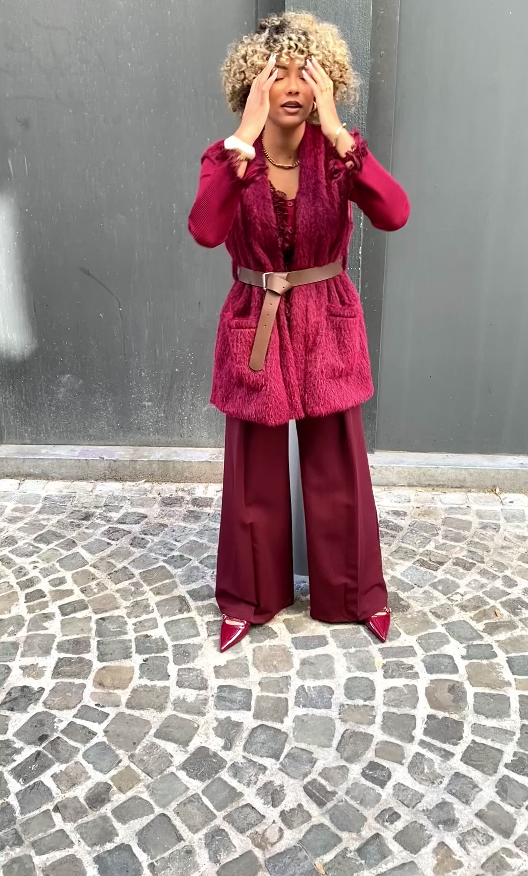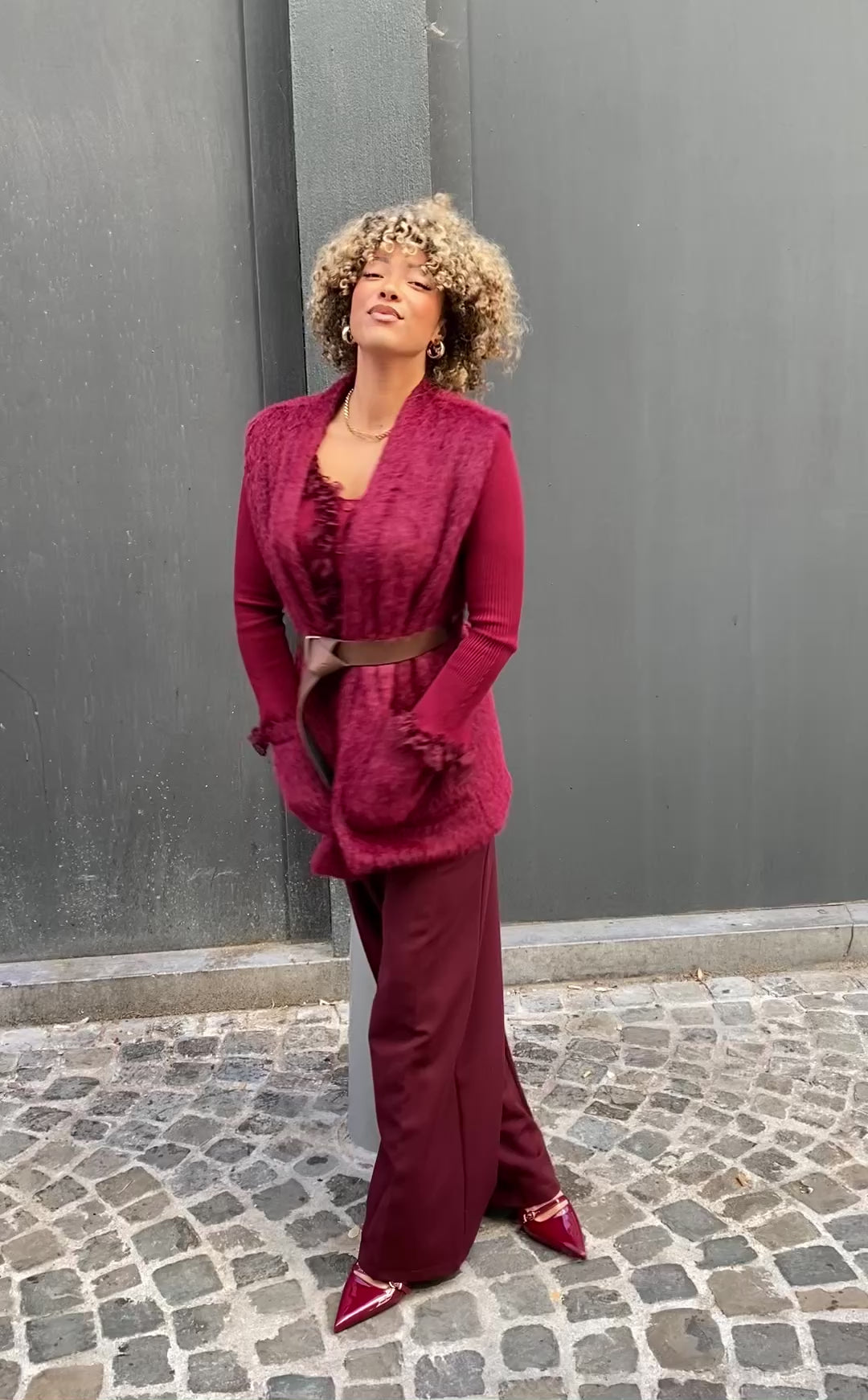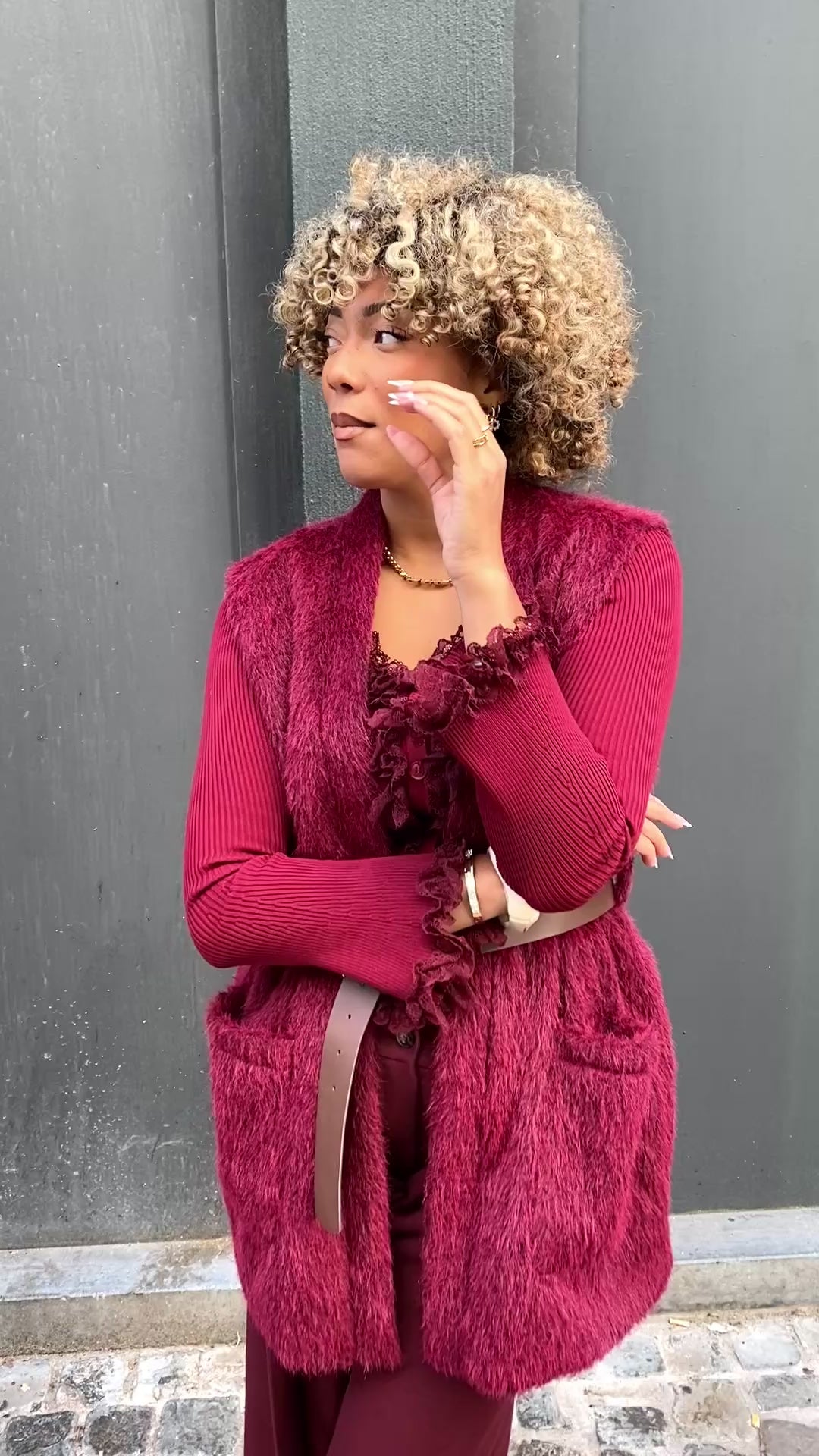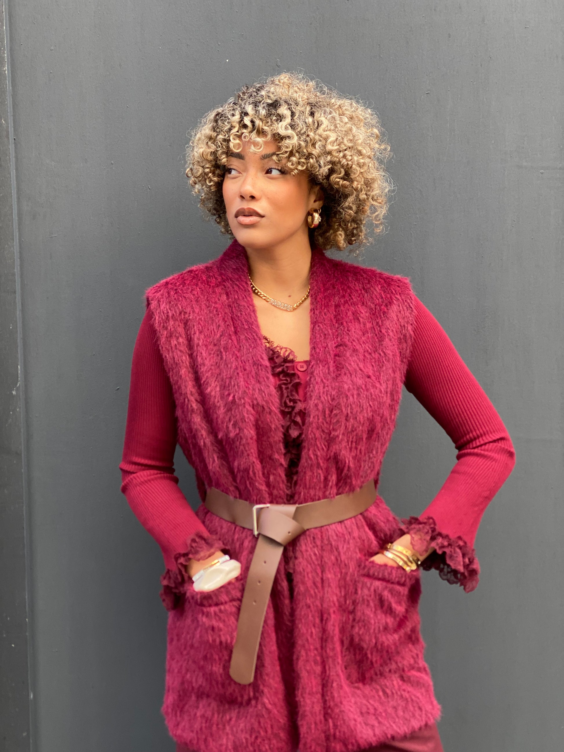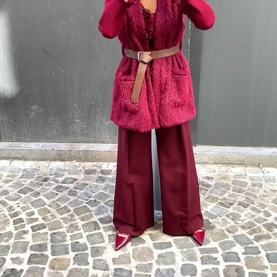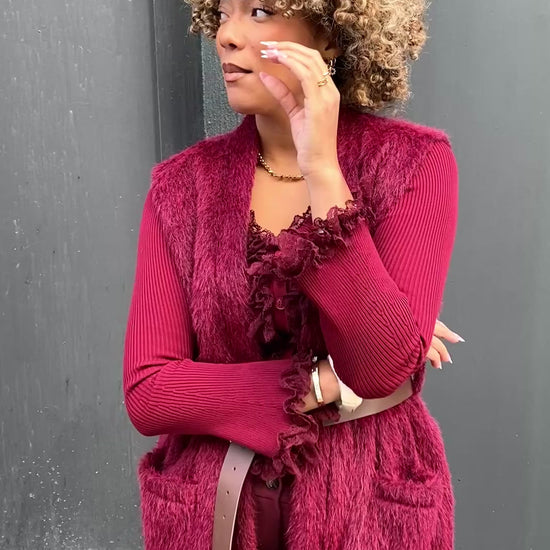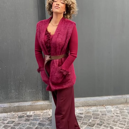 Veste manteau sans manches en petite fourrure Synthétique bordeaux
